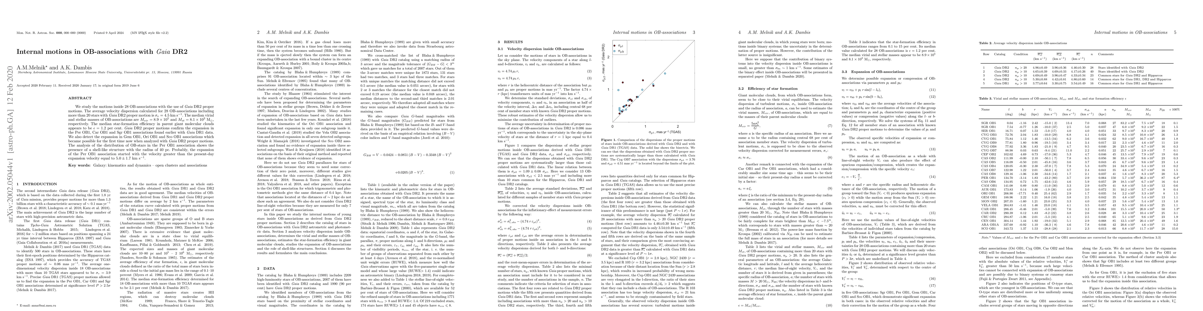 The paper presents a comprehensive analysis of OB-association internal motions using Gaia DR2 data, providing improved velocity dispersion and mass estimates.