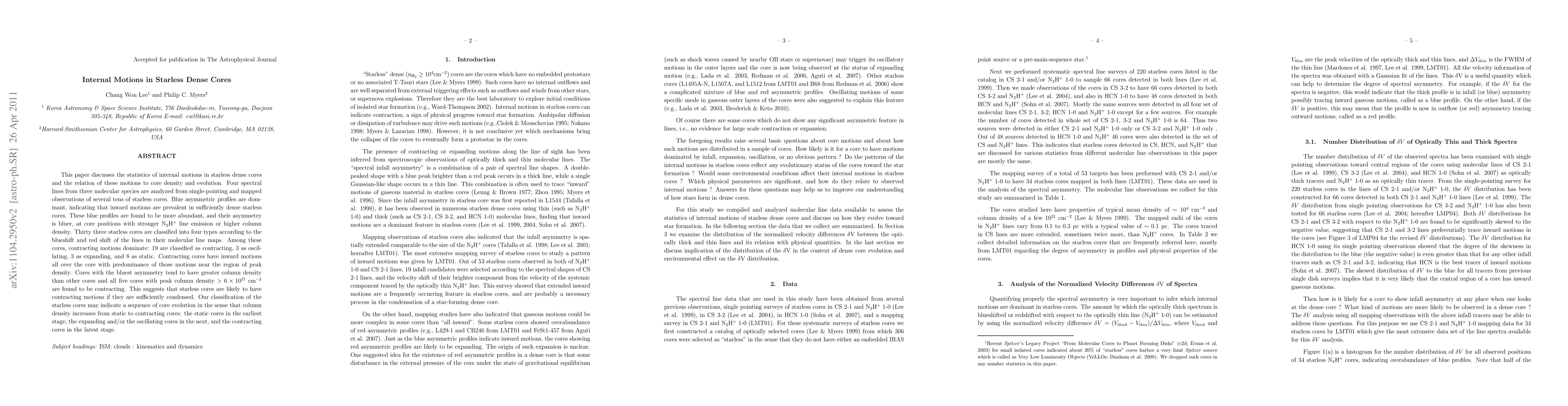 This paper analyzes the internal motions of starless dense cores using spectral lines, finding that contracting motions dominate in sufficiently dense cores. The study suggests a possible evolutionary sequence from static to contracting cores, with higher column density indicating later stages of evolution.