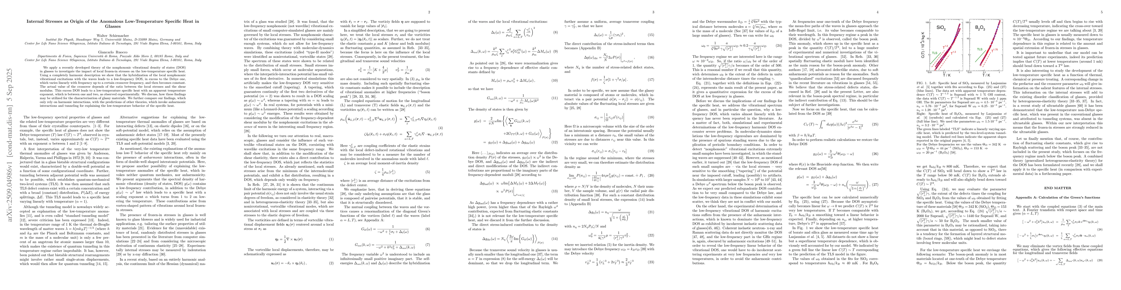 We apply a recently developed theory of the nonphononic vibrational density of states (DOS) in glasses to investigate the impact of local frozen-in stresses on the low-temperature specific heat. Using a completely harmonic description we show that the hybridization of the local nonphononic vibrational excitations with the waves leads to a low-frequency DOS, in excess to the Debye one, which varies linearly with frequency up to a certain crossover frequency, and then becomes constant. The actual value of the crossover depends of the ratio between the local stresses and the shear modulus. This excess DOS leads to a low-temperature specific heat with an apparent temperature exponent, which is between one and two, as observed experimentally. We discuss, how these findings may be utilized for the characterisation of glassy materials. We further compare our findings, which only rely on harmonic interactions, with the predictions of other theories, which invoke anharmonic interactions and tunneling for explaining the low-temperature behavior of the specific heat.