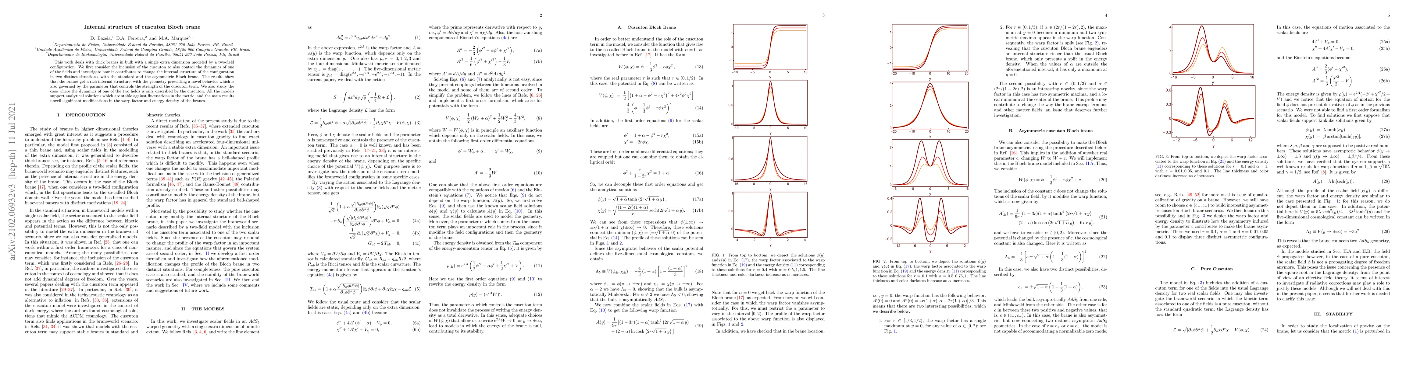 This work deals with thick branes in bulk with a single extra dimension modeled by a two-field configuration. We first consider the inclusion of the cuscuton to also control the dynamics of one of the fields and investigate how it contributes to change the internal structure of the configuration in two distinct situations, with the standard and the asymmetric Bloch brane. The results show that the branes get a rich internal structure, with the geometry presenting a novel behavior which is also governed by the parameter that controls the strength of the cuscuton term. We also study the case where the dynamics of one of the two fields is only described by the cuscuton. All the models support analytical solutions which are stable against fluctuations in the metric, and the main results unveil significant modifications in the warp factor and energy density of the branes.