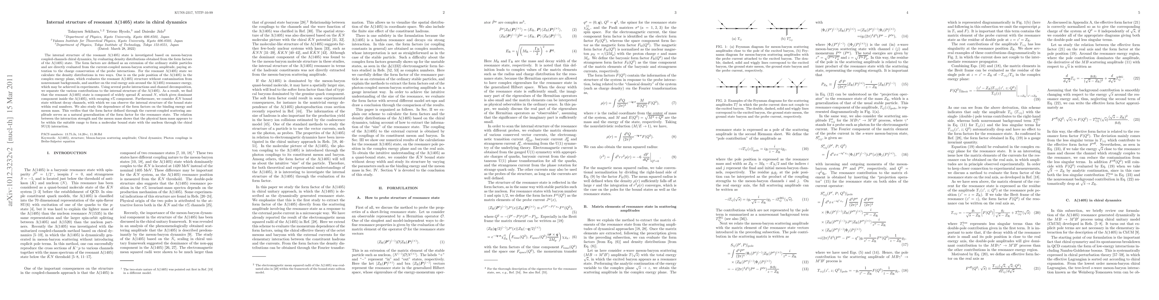 Researchers investigated the internal structure of the Lambda(1405) state using chiral dynamics, finding it composed of a dominant K-bar component around N with an escaping pi Sigma component.