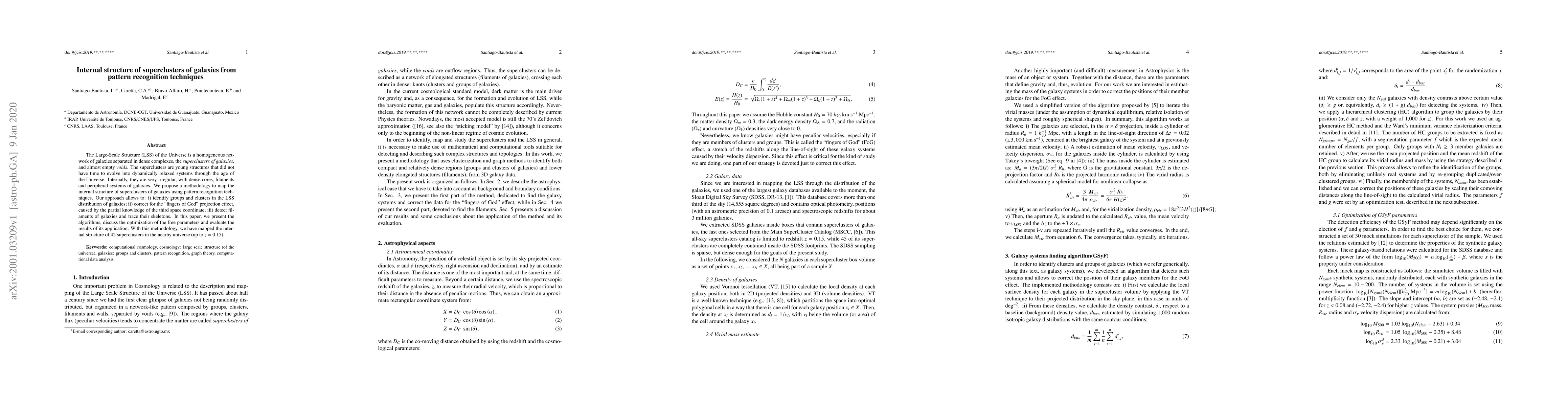 Researchers used pattern recognition techniques to map the internal structure of superclusters of galaxies, identifying dense cores, filaments, and peripheral systems within these young structures.