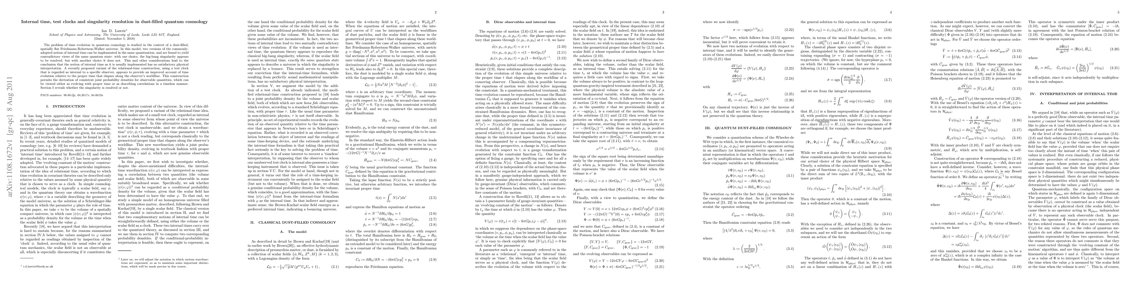 The problem of time evolution in quantum cosmology is studied in the context of a dust-filled, spatially flat Friedmann-Robertson-Walker universe. In this model, two versions of the commonly-adopted notion of internal time can be implemented in the same quantization, and are found to yield contradictory views of the same quantum state: with one choice, the big-bang singularity appears to be resolved, but with another choice it does not. This and other considerations lead to the conclusion that the notion of internal time as it is usually implemented has no satisfactory physical interpretation. A recently proposed variant of the relational-time construction, using a test clock that is regarded as internal to a specific observer, appears to provide an improved account of time evolution relative to the proper time that elapses along the observer's worldline. This construction permits the derivation of consistent joint probability densities for observable quantities, which can be viewed either as evolving with proper time or as describing correlations in a timeless manner. Section I reveals whether the singularity is resolved or not.