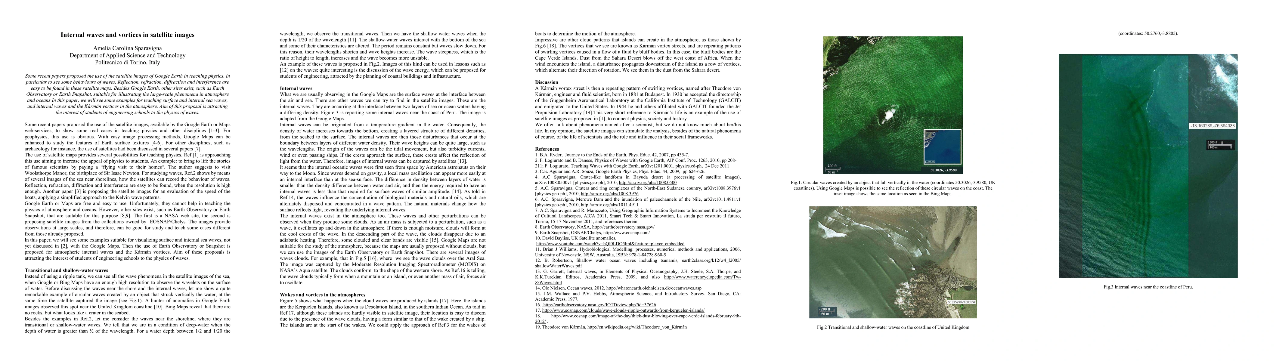 This paper explores the use of satellite images from Google Earth and other platforms to illustrate physics concepts, focusing on surface and internal sea waves, and the Karman vortices in the atmosphere, aiming to engage students in engineering schools with wave phenomena.