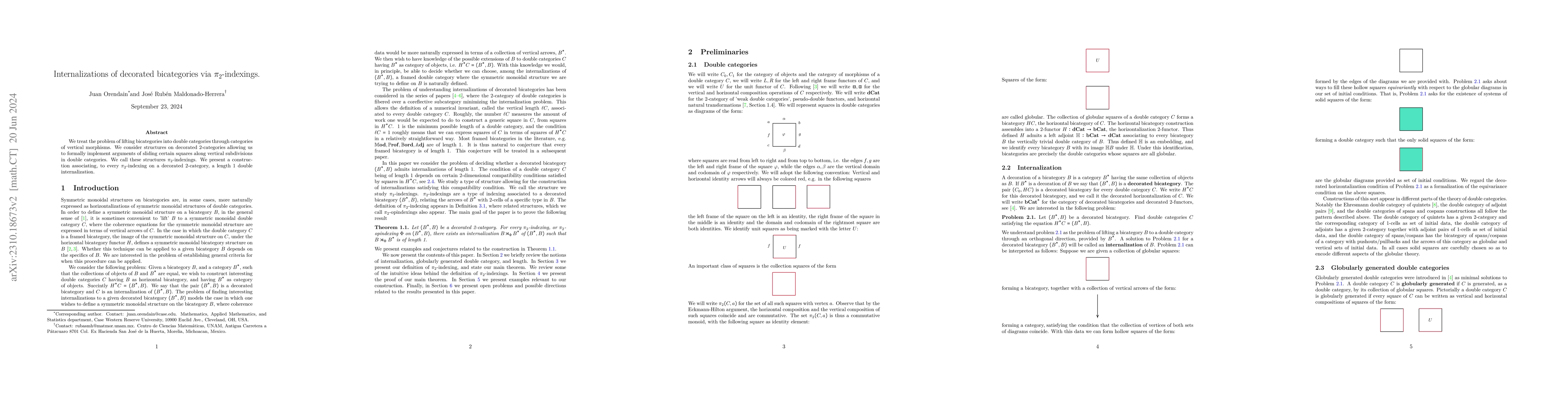Summary: The paper develops a method to internalize decorated bicategories into double categories using $\pi_2$-indexings, which allow for the formal manipulation of vertical morphisms and the sliding of squares in double categories. This results in a construction that associates a length 1 double internalization to each $\pi_2$-indexing on a decorated 2-category.