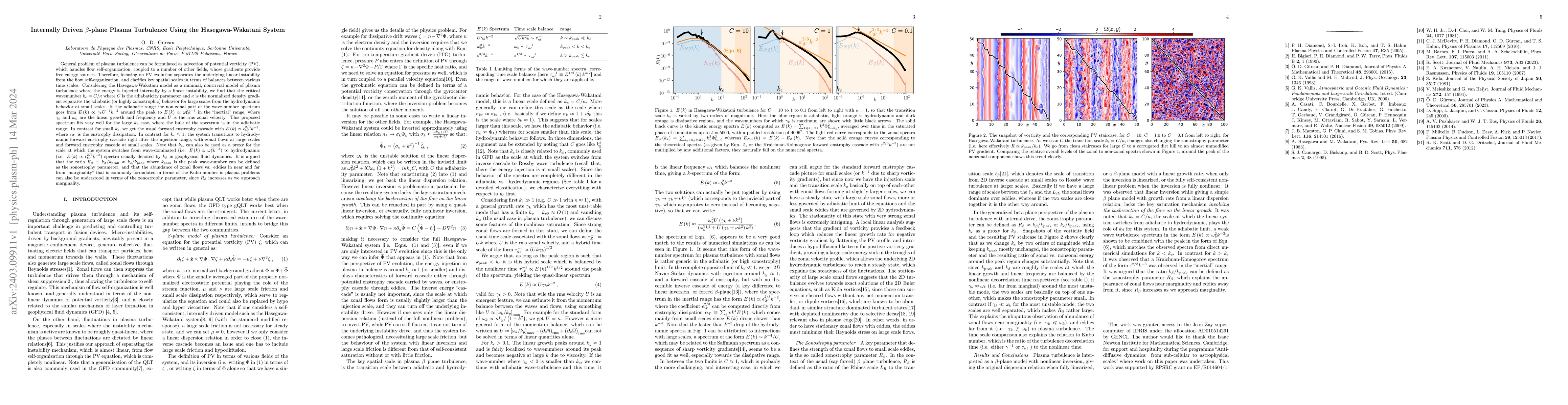 This paper investigates plasma turbulence via the Hasegawa-Wakatani system, demonstrating that the critical wavenumber $k_c$ differentiates adiabatic behavior at large scales from hydrodynamic behavior at small scales. The study reveals distinct spectral behaviors depending on $k_c$, with transitions in wave-number spectra that reflect the underlying dynamics.