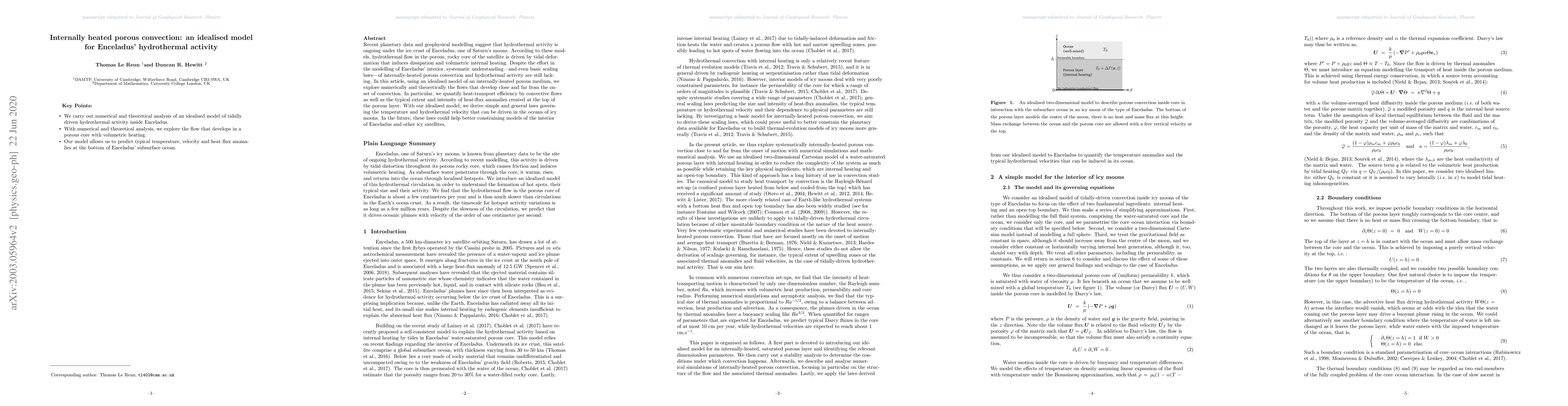 This paper explores an idealised model of internally-heated porous convection to understand hydrothermal activity on Enceladus, driven by tidal heating. It derives general laws governing temperature and hydrothermal flow, aiming to improve models of icy moons' interiors.