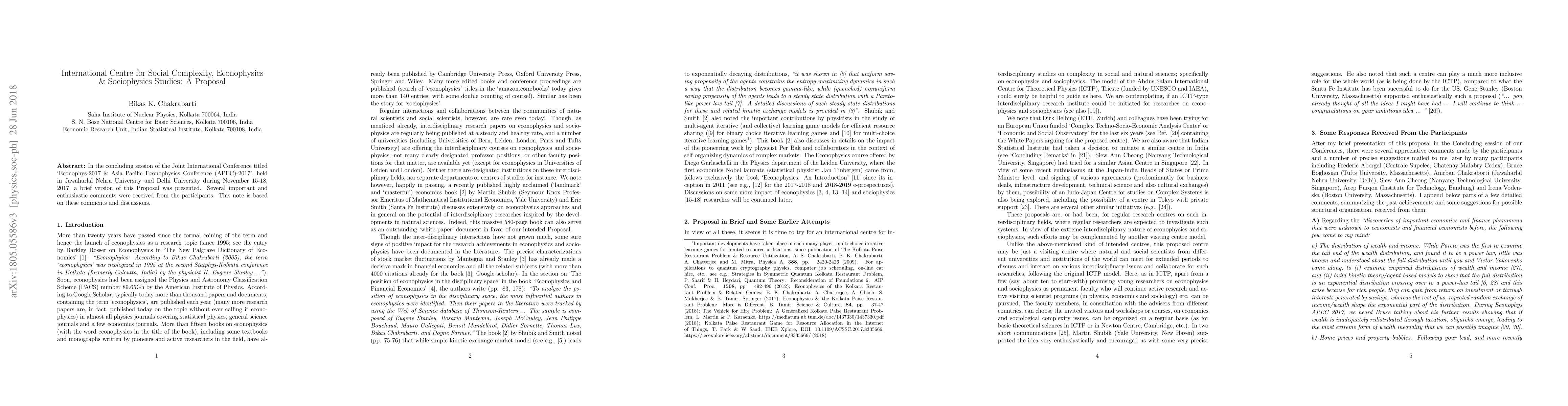 In the concluding session of the Joint International Conference titled Econophys-2017 and Asia Pacific Econophysics Conference (APEC)-2017, held in Jawaharlal Nehru University and Delhi University during November 15-18, 2017, a brief version of this Proposal was presented. Several important and enthusiastic comments were received from the participants. This note is based on these comments and discussions.