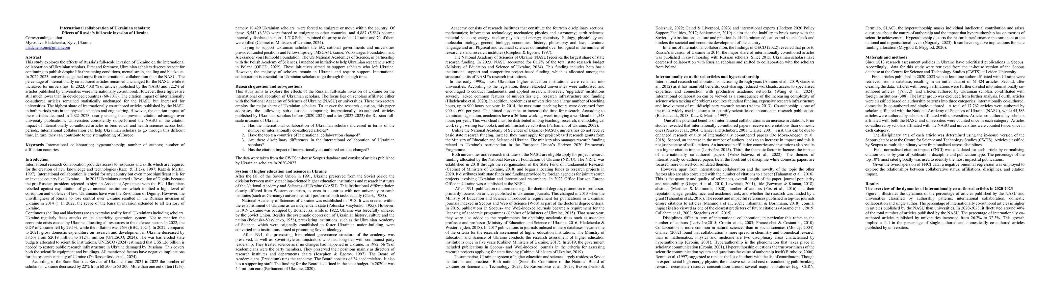 Focuses on the unique situation of Ukrainian scholars under Russia's invasion, offering insights into the resilience and adaptability of academic collaboration in crisis.
