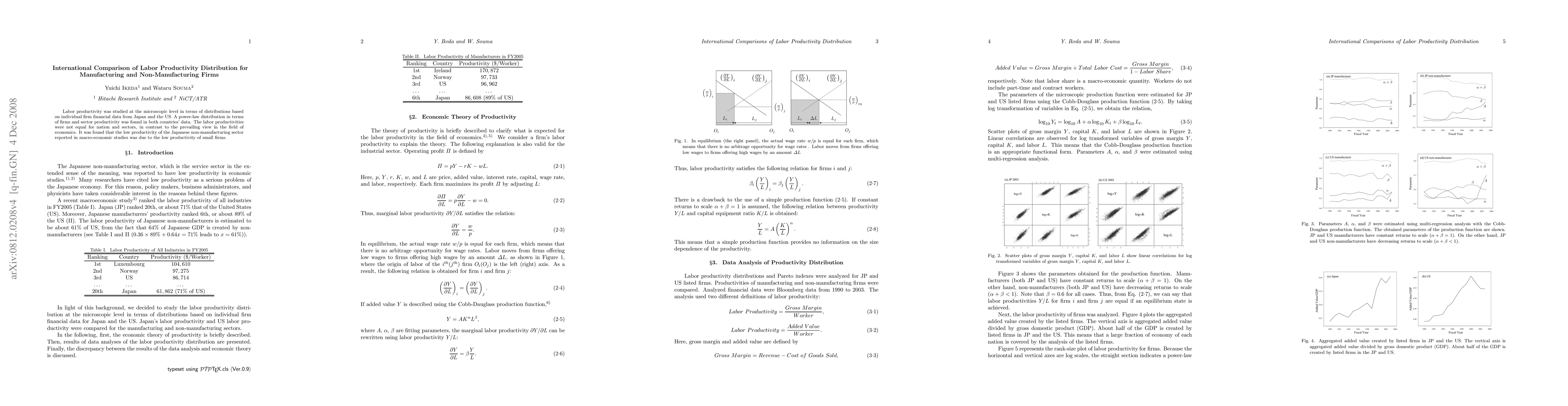 This study reveals a power-law distribution of labor productivity among firms in both Japan and the US, challenging the notion of equal productivity across nations and sectors. It highlights that the low productivity in the Japanese non-manufacturing sector is driven by small firms.