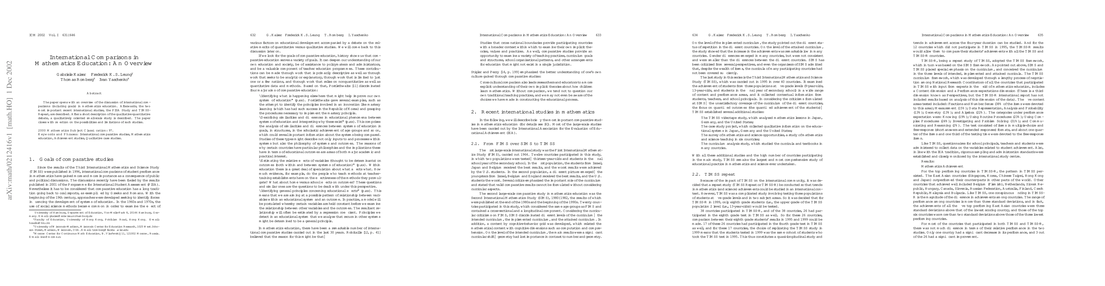 The paper opens with an overview of the discussion of international comparisons (including goals) in mathematics education. Afterwards, the two most important recent international studies, the PISA Study and TIMSS-Repeat, are described. After a short description of the qualitative-quantitative debate, a qualitatively oriented small-scale study is described. The paper closes with reflection on the possibilities and limitations of such studies.