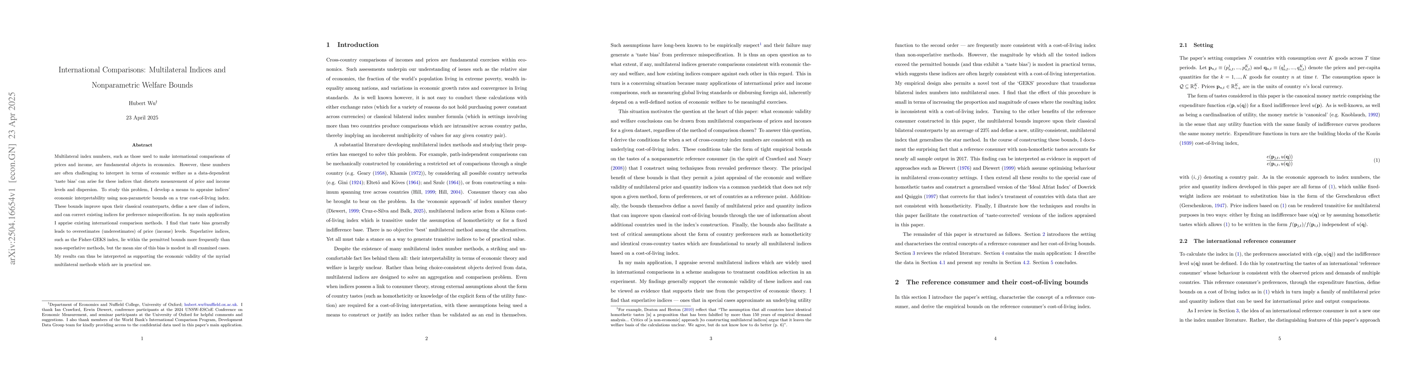 This work stands out by appraising existing international comparison methods' economic consistency using non-parametric bounds, distinguishing itself from existing literature that often assumes validity of index assumptions.