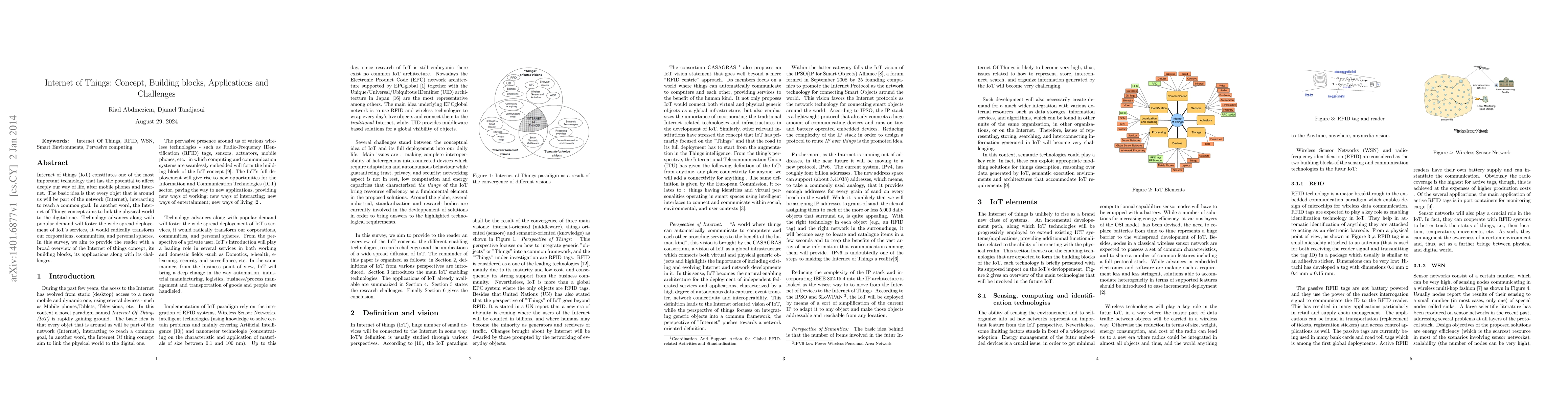 This paper provides a comprehensive overview of the Internet of Things (IoT), detailing its concept, fundamental building blocks, diverse applications, and the challenges it faces. It highlights IoT's transformative potential in various sectors, emphasizing the need for addressing its inherent challenges.