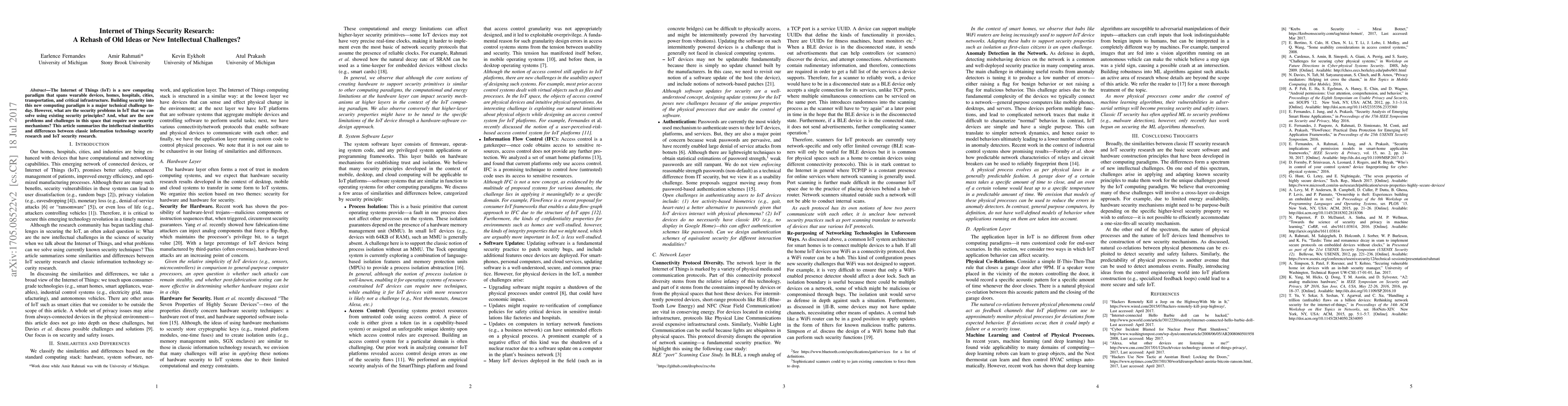 The Internet of Things (IoT) is a new computing paradigm that spans wearable devices, homes, hospitals, cities, transportation, and critical infrastructure. Building security into this new computing paradigm is a major technical challenge today. However, what are the security problems in IoT that we can solve using existing security principles? And, what are the new problems and challenges in this space that require new security mechanisms? This article summarizes the intellectual similarities and differences between classic information technology security research and IoT security research.