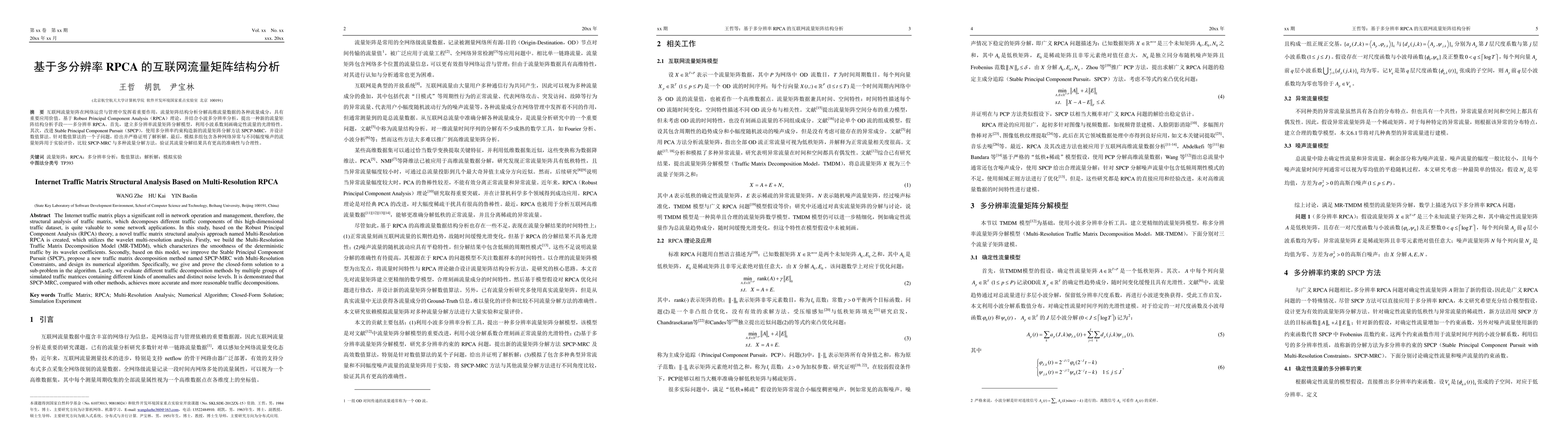 This paper proposes a novel Multi-Resolution RPCA method for structural analysis of Internet traffic matrices, utilizing wavelet multi-resolution analysis to decompose traffic components. The method, SPCP-MRC, demonstrates superior accuracy in decomposing simulated traffic matrices with various anomalies and noise levels.