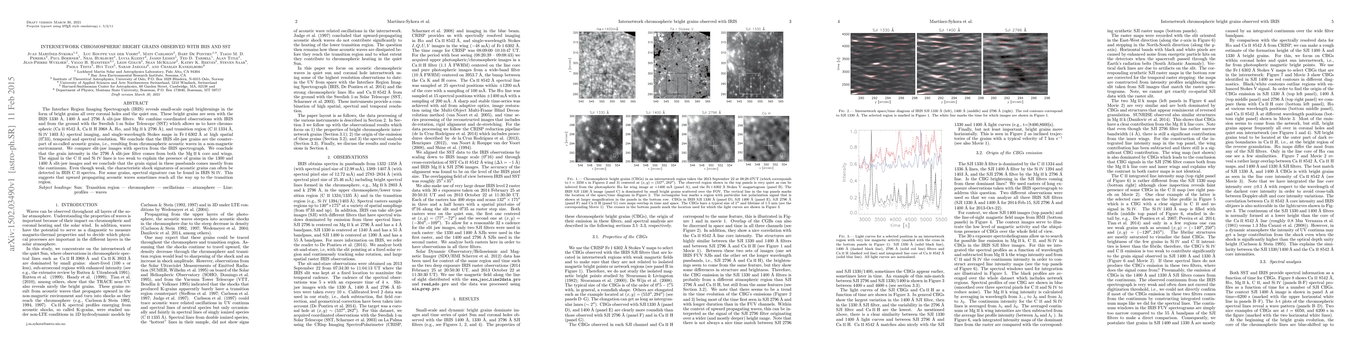 The Interface Region Imaging Spectrograph (IRIS) observes small-scale bright grains in coronal holes and quiet sun regions, correlating these with ground-based observations from the Swedish 1-m Solar Telescope. The grains are identified as acoustic grains driven by chromospheric acoustic waves, with their intensity in the 2796 Å filter stemming from both Mg II k core and wings.