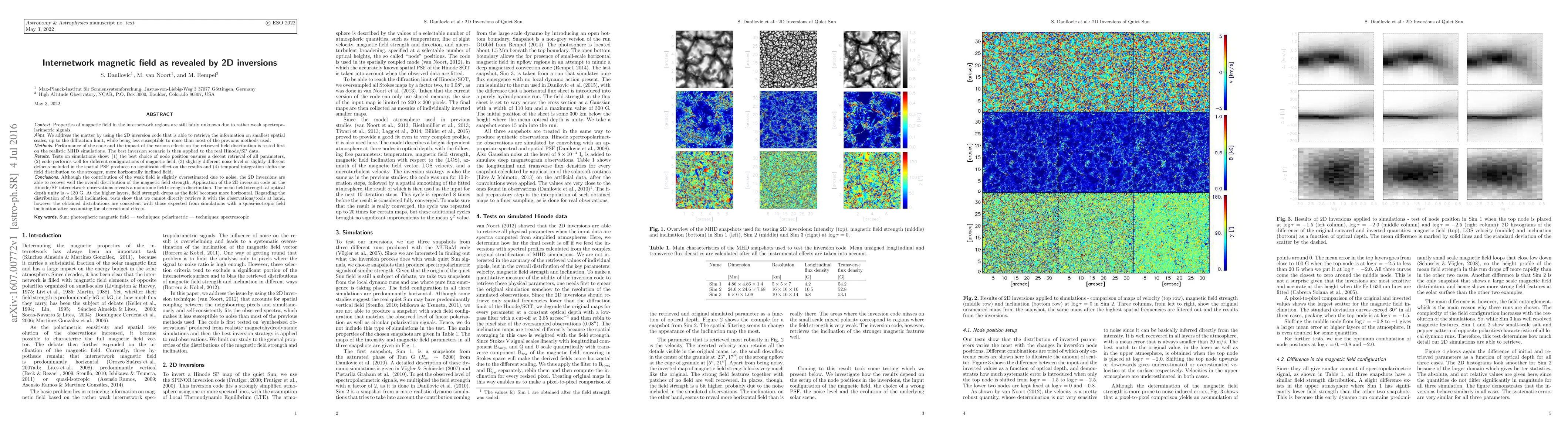 Researchers developed a 2D inversion code to analyze magnetic field properties in internetwork regions, revealing a monotonic field strength distribution with a mean of ~130G, and consistent field inclination distributions with simulations.