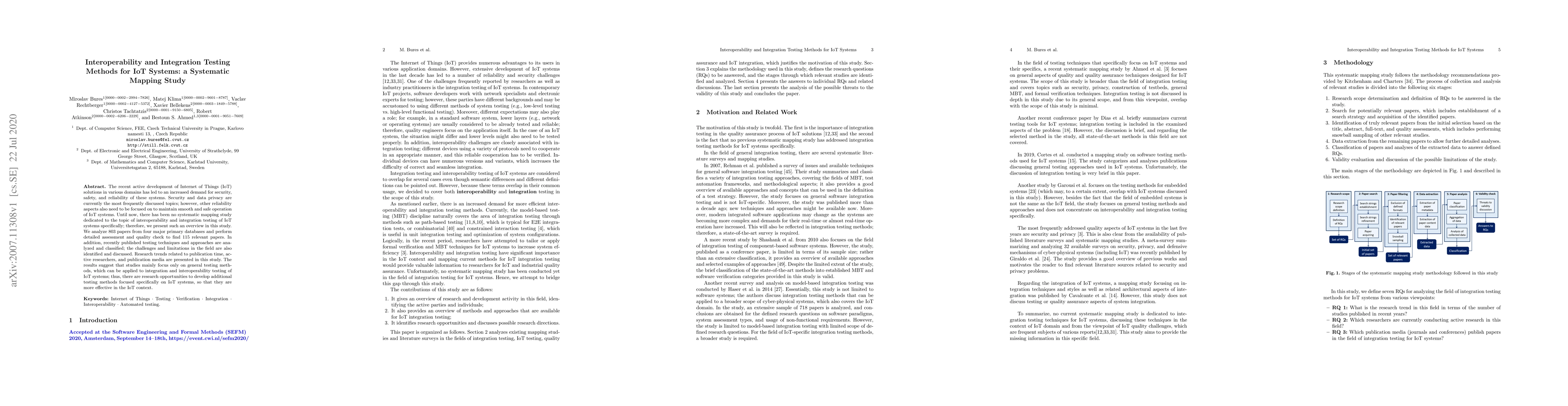 This paper conducts a systematic mapping study on interoperability and integration testing methods for IoT systems, analyzing 115 relevant papers from 803 reviewed. It identifies challenges and opportunities for developing specialized IoT testing methods, highlighting a current gap in research focused specifically on IoT systems.