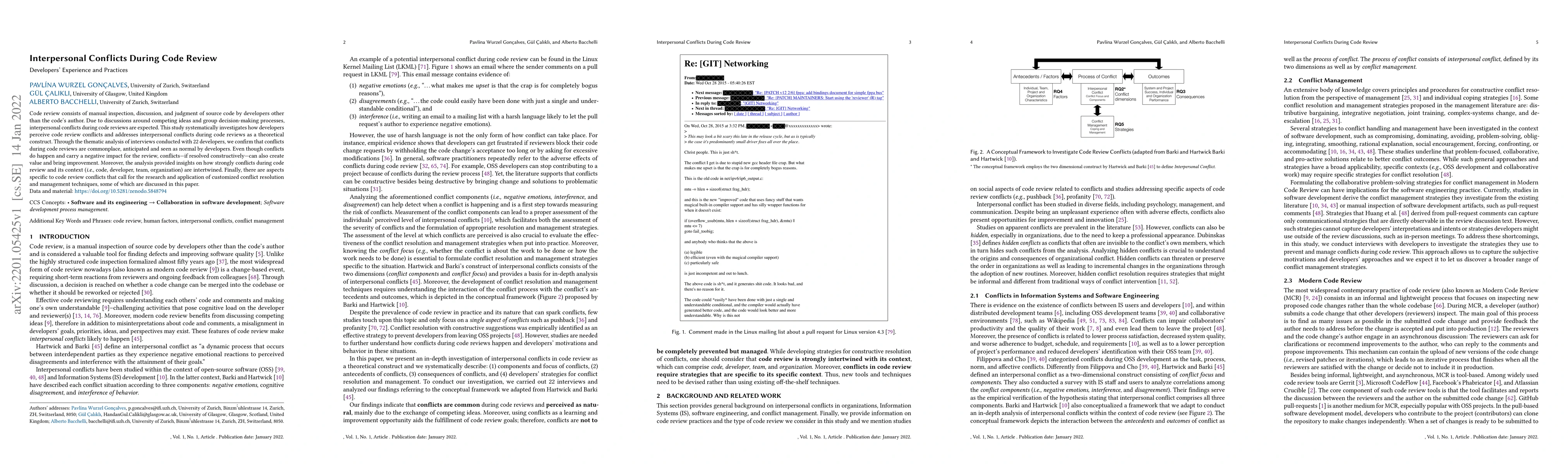 This study explores the perception and management of interpersonal conflicts during code reviews, revealing that such conflicts are common, expected, and can be constructive if resolved. The thematic analysis of interviews with 22 developers highlights the intertwined nature of conflicts with code, developers, teams, and organizations, suggesting the need for tailored conflict resolution techniques.