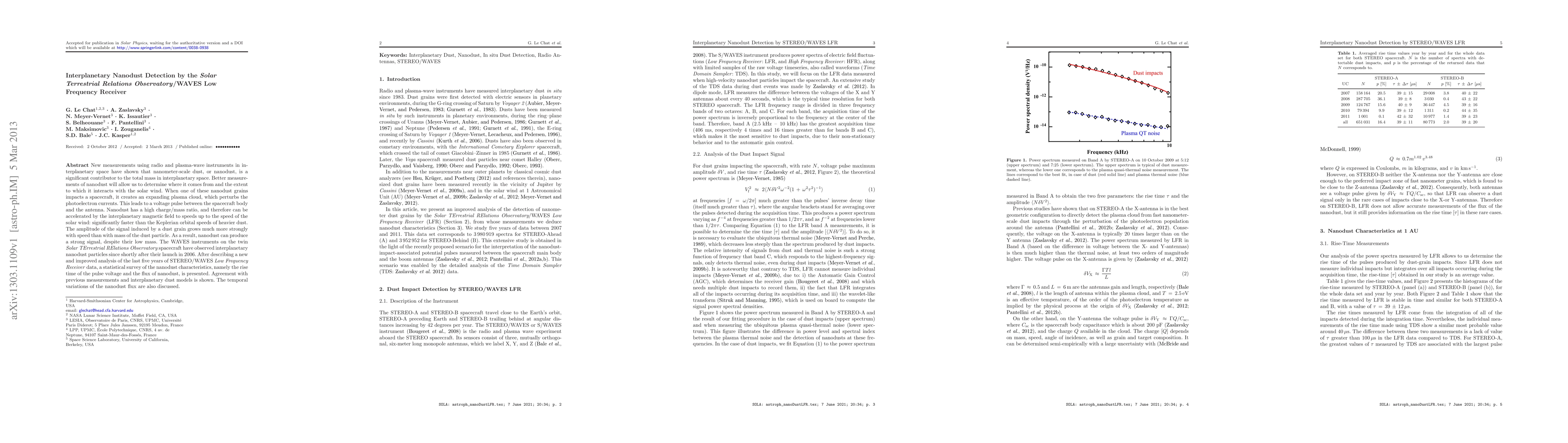 This paper reports on new measurements of nanometer-scale interplanetary dust, or nanodust, using the STEREO/WAVES Low Frequency Receiver. The study finds that nanodust significantly contributes to the mass in interplanetary space and can produce strong signals due to its high charge/mass ratio, despite its low mass.
