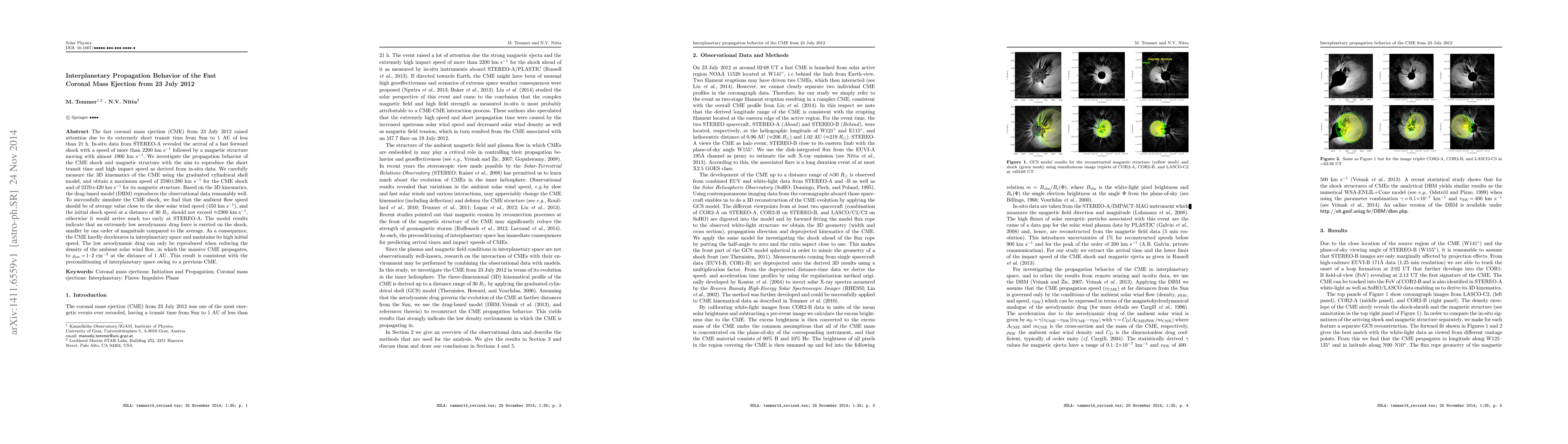 This paper investigates the fast coronal mass ejection (CME) from 23 July 2012, which traveled from the Sun to 1 AU in less than 21 hours. Using the graduated cylindrical shell model, the study finds that the CME shock and magnetic structure maintained high speeds, with the shock reaching up to 2580 km s$^{-1}$. The drag-based model successfully reproduces these observations, indicating minimal aerodynamic drag likely due to a preconditioned low-density solar wind.