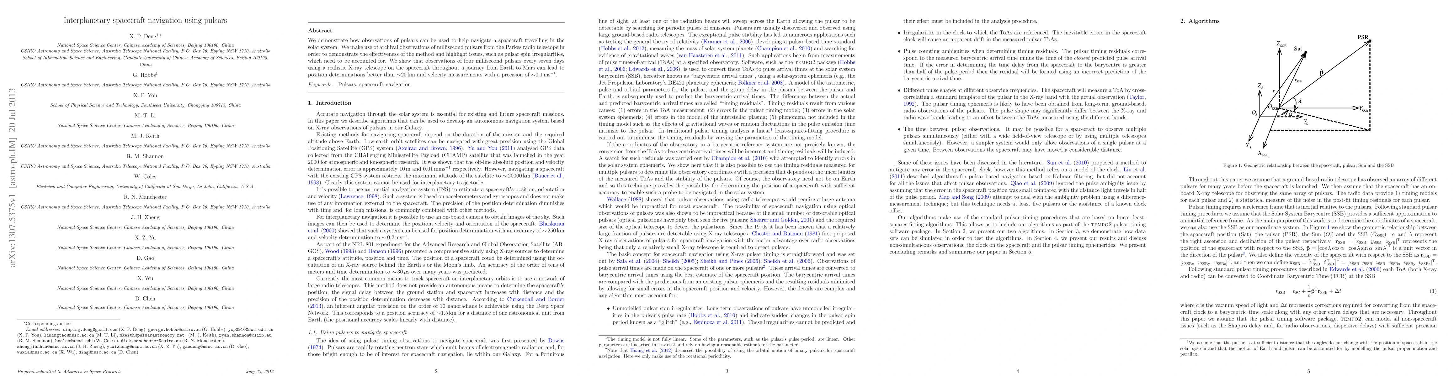 The paper presents algorithms and a simulation framework for pulsar-based spacecraft navigation, including the handling of red timing noise and clock drift.
