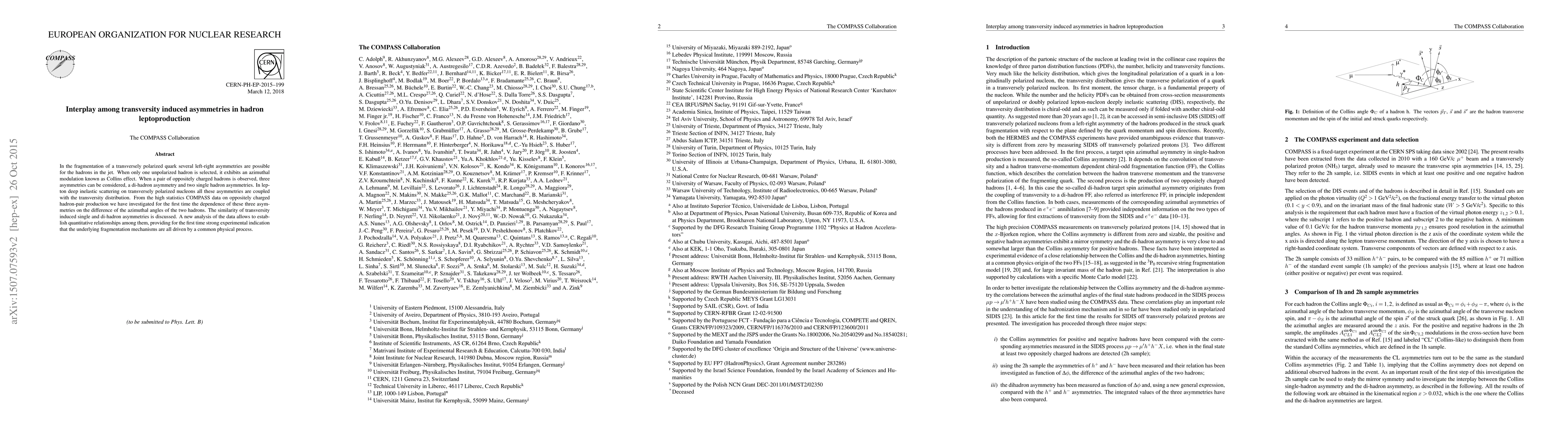 In the fragmentation of a transversely polarized quark several left-right asymmetries are possible for the hadrons in the jet. When only one unpolarized hadron is selected, it exhibits an azimuthal modulation known as Collins effect. When a pair of oppositely charged hadrons is observed, three asymmetries can be considered, a di-hadron asymmetry and two single hadron asymmetries. In lepton deep inelastic scattering on transversely polarized nucleons all these asymmetries are coupled with the transversity distribution. From the high statistics COMPASS data on oppositely charged hadron-pair production we have investigated for the first time the dependence of these three asymmetries on the difference of the azimuthal angles of the two hadrons. The similarity of transversity induced single and di-hadron asymmetries is discussed. A new analysis of the data allows to establish quantitative relationships among them, providing for the first time strong experimental indication that the underlying fragmentation mechanisms are all driven by a common physical process.