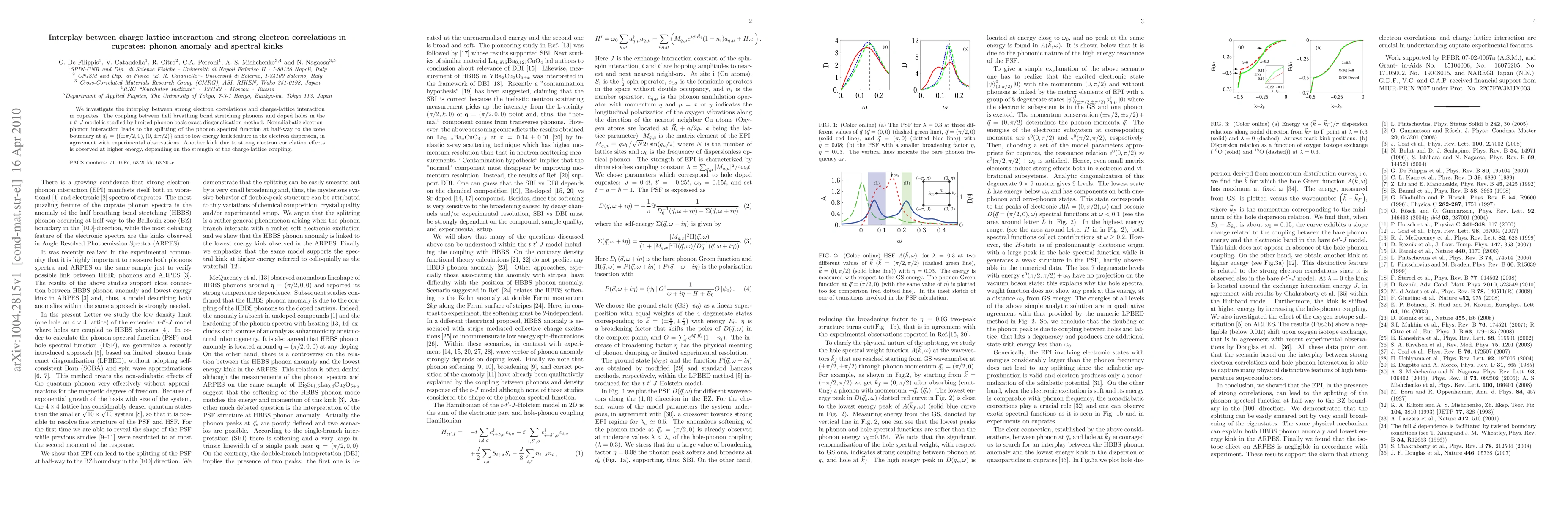 This paper explores the interaction between strong electron correlations and charge-lattice effects in cuprates, revealing phonon anomalies and spectral kinks through exact diagonalization. It finds that nonadiabatic electron-phonon coupling causes phonon spectral splitting and low-energy kinks in electron dispersion, corroborated by experimental data.