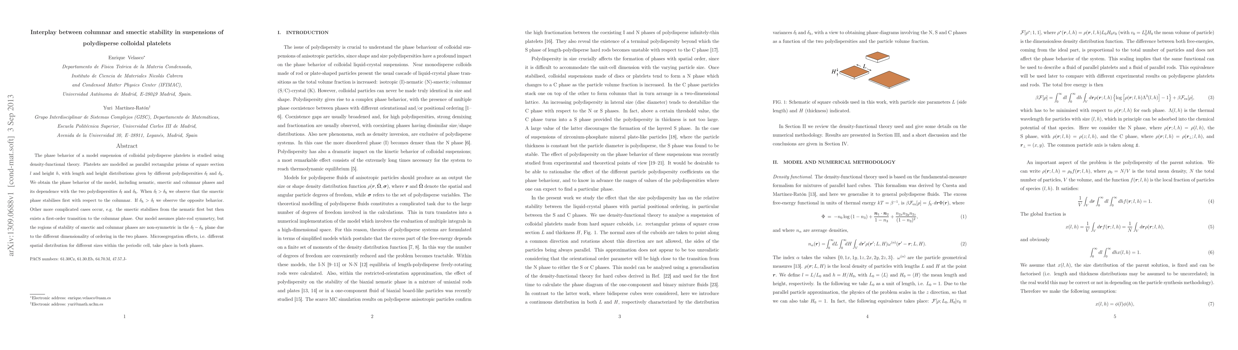 This study uses density-functional theory to explore the phase behavior of suspensions of polydisperse colloidal platelets, revealing that the stability of smectic versus columnar phases depends on the relative polydispersity in length and height. The smectic phase stabilizes first when length polydispersity exceeds height polydispersity, and vice versa.