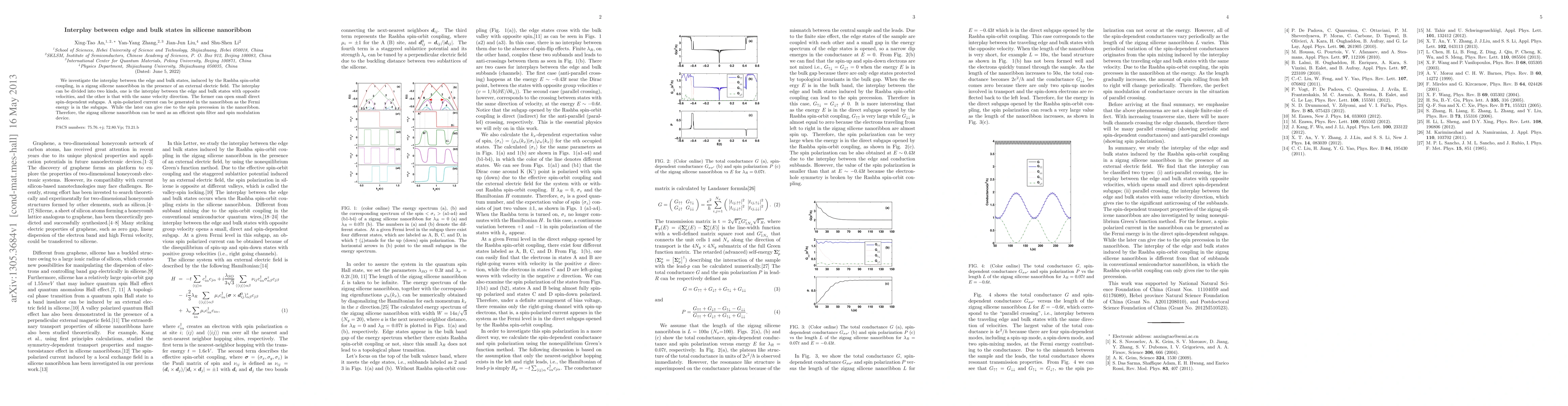 This paper explores how Rashba spin-orbit coupling influences the interaction between edge and bulk states in zigzag silicene nanoribbons under an electric field, demonstrating the generation of spin-polarized currents and spin precession, thus highlighting its potential as a spin filter and modulation device.