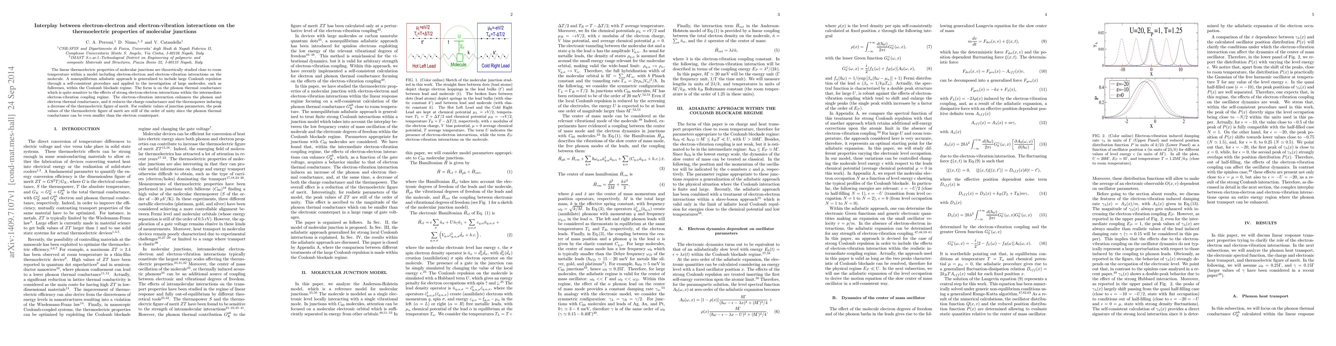 This paper investigates the thermoelectric properties of molecular junctions, focusing on the interplay between electron-electron and electron-vibration interactions. The study finds that electron-vibration interactions enhance phonon thermal conductance while reducing charge conductance and thermopower, ultimately decreasing the thermoelectric figure of merit, though peak values remain around unity.