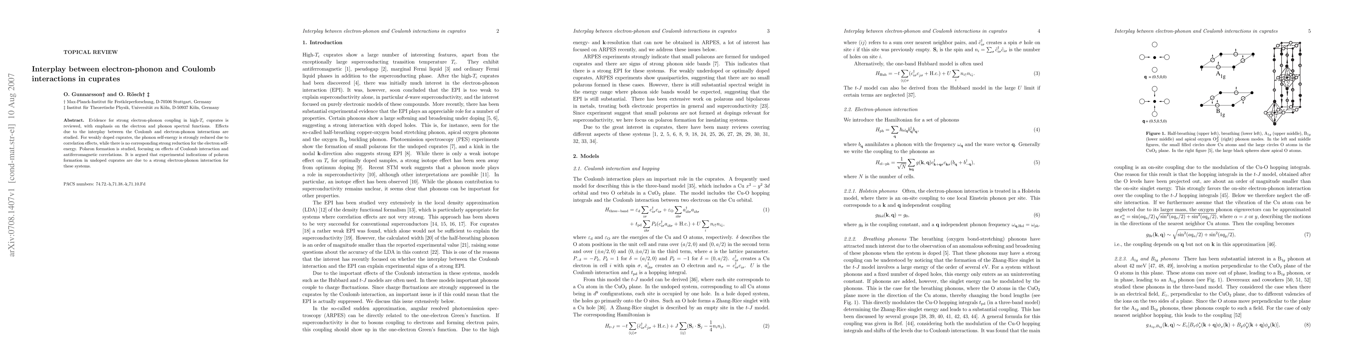 Evidence for strong electron-phonon coupling in high-Tc cuprates is reviewed, with emphasis on the electron and phonon spectral functions. Effects due to the interplay between the Coulomb and electron-phonon interactions are studied. For weakly doped cuprates, the phonon self-energy is strongly reduced due to correlation effects, while there is no corresponding strong reduction for the electron self-energy. Polaron formation is studied, focusing on effects of Coulomb interaction and antiferromagnetic correlations. It is argued that experimental indications of polaron formation in undoped cuprates are due to a strong electron-phonon interaction for these systems.