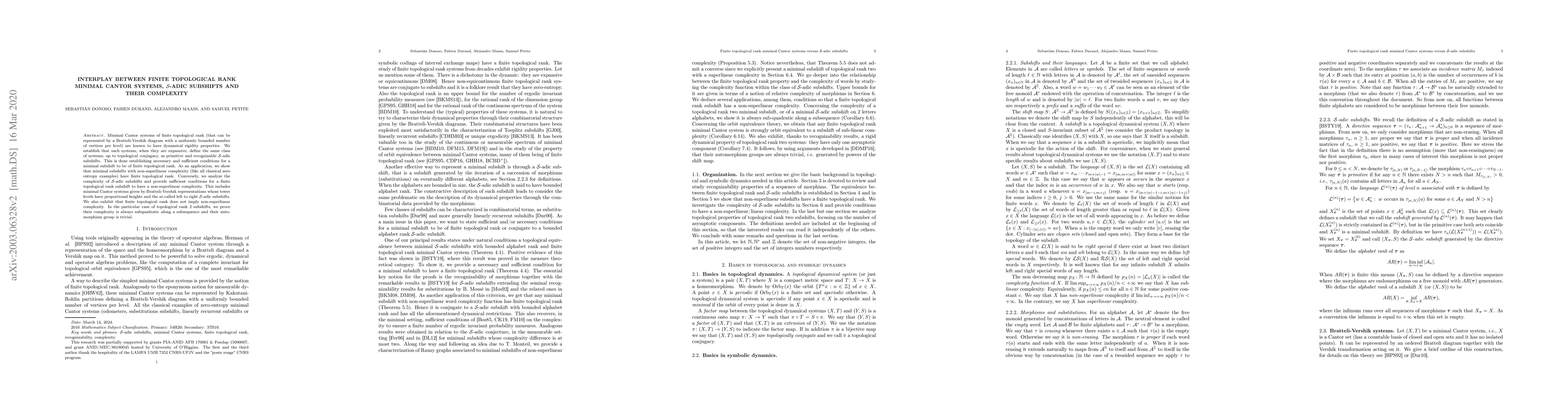 This paper explores the relationship between minimal Cantor systems of finite topological rank and ${\mathcal S}$-adic subshifts, establishing that expansive systems of finite topological rank are topologically conjugate to primitive and recognizable ${\mathcal S}$-adic subshifts. It also shows that minimal subshifts with non-superlinear complexity have finite topological rank and provides conditions for finite topological rank subshifts to have non-superlinear complexity.