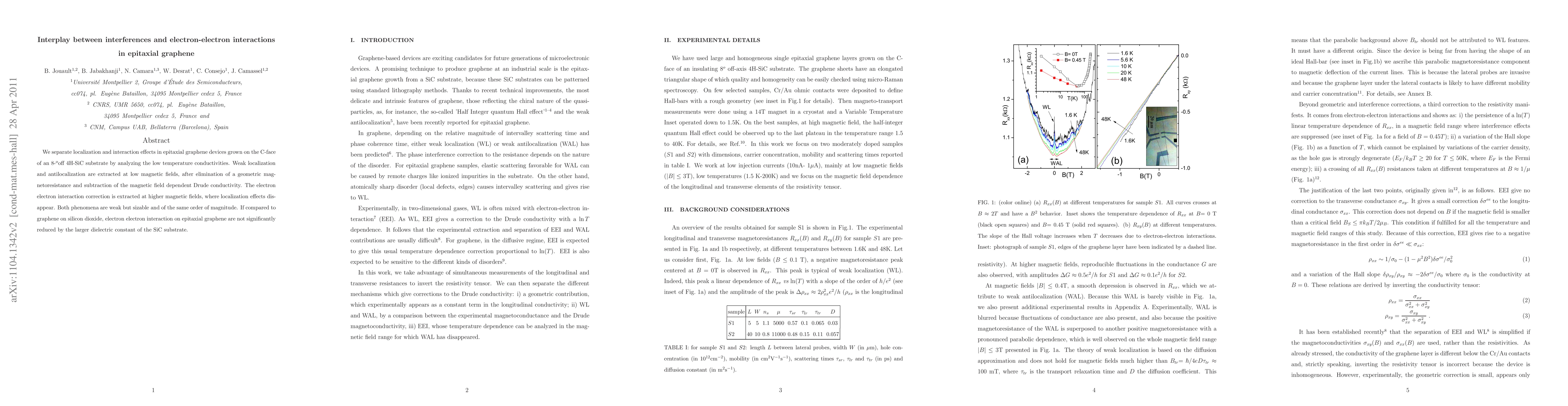 We separate localization and interaction effects in epitaxial graphene devices grown on the C-face of a 4H-SiC substrate by analyzing the low temperature conductivities. Weak localization and antilocalization are extracted at low magnetic fields, after elimination of a geometric magnetoresistance and subtraction of the magnetic field dependent Drude conductivity. The electron electron interaction correction is extracted at higher magnetic fields, where localization effects disappear. Both phenomena are weak but sizable and of the same order of magnitude. If compared to graphene on silicon dioxide, electron electron interaction on epitaxial graphene are not significantly reduced by the larger dielectric constant of the SiC substrate.