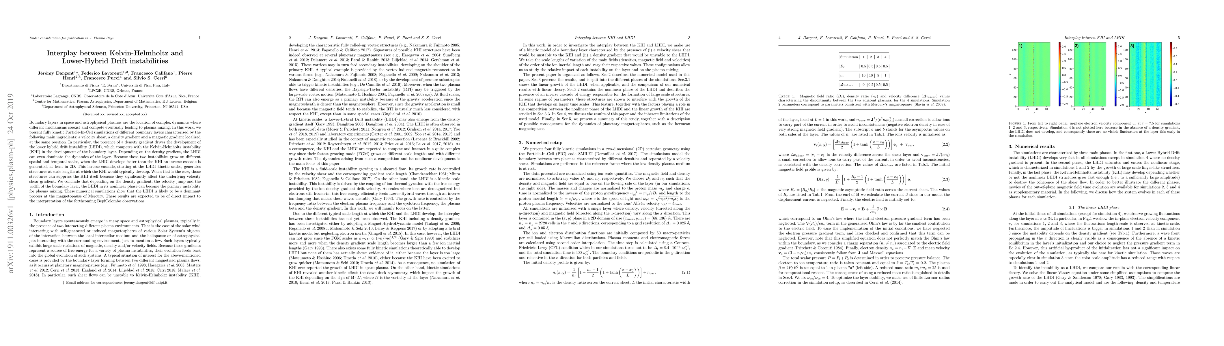 Boundary layers in space and astrophysical plasmas are the location of complex dynamics where different mechanisms coexist and compete eventually leading to plasma mixing. In this work, we present fully kinetic Particle-In-Cell simulations of different boundary layers characterized by the following main ingredients: a velocity shear, a density gradient and a magnetic gradient localized at the same position. In particular, the presence of a density gradient drives the development of the lower hybrid drift instability (LHDI), which competes with the Kelvin-Helmholtz instability (KHI) in the development of the boundary layer. Depending on the density gradient, the LHDI can even dominate the dynamics of the layer. Because these two instabilities grow on different spatial and temporal scales, when the LHDI develops faster than the KHI an inverse cascade is generated, at least in 2D. This inverse cascade, starting at the LHDI kinetic scales, generates structures at scale lengths at which the KHI would typically develop. When that is the case, those structures can suppress the KHI itself because they significantly affect the underlying velocity shear gradient. We conclude that depending on the density gradient, the velocity jump and the width of the boundary layer, the LHDI in its nonlinear phase can become the primary instability for plasma mixing. These numerical simulations show that the LHDI is likely to be a dominant process at the magnetopause of Mercury. These results are expected to be of direct impact to the interpretation of the forthcoming BepiColombo observations.