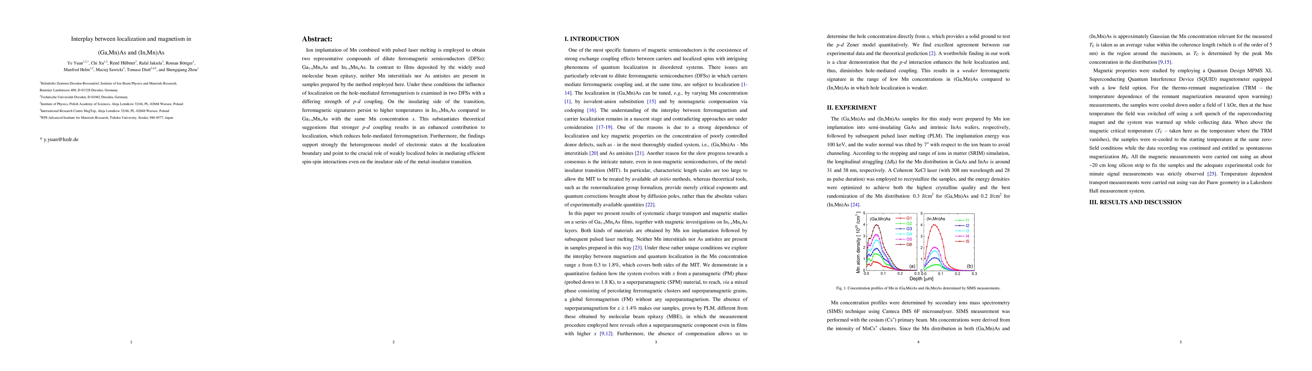 Ion implantation of Mn combined with pulsed laser melting is employed to obtain two representative compounds of dilute ferromagnetic semiconductors (DFSs): Ga1-xMnxAs and In1-xMnxAs. In contrast to films deposited by the widely used molecular beam epitaxy, neither Mn interstitials nor As antisites are present in samples prepared by the method employed here. Under these conditions the influence of localization on the hole-mediated ferromagnetism is examined in two DFSs with a differing strength of p-d coupling. On the insulating side of the transition, ferromagnetic signatures persist to higher temperatures in In1-xMnxAs compared to Ga1-xMnxAs with the same Mn concentration x. This substantiates theoretical suggestions that stronger p-d coupling results in an enhanced contribution to localization, which reduces hole-mediated ferromagnetism. Furthermore, the findings support strongly the heterogeneous model of electronic states at the localization boundary and point to the crucial role of weakly localized holes in mediating efficient spin-spin interactions even on the insulator side of the metal-insulator transition.