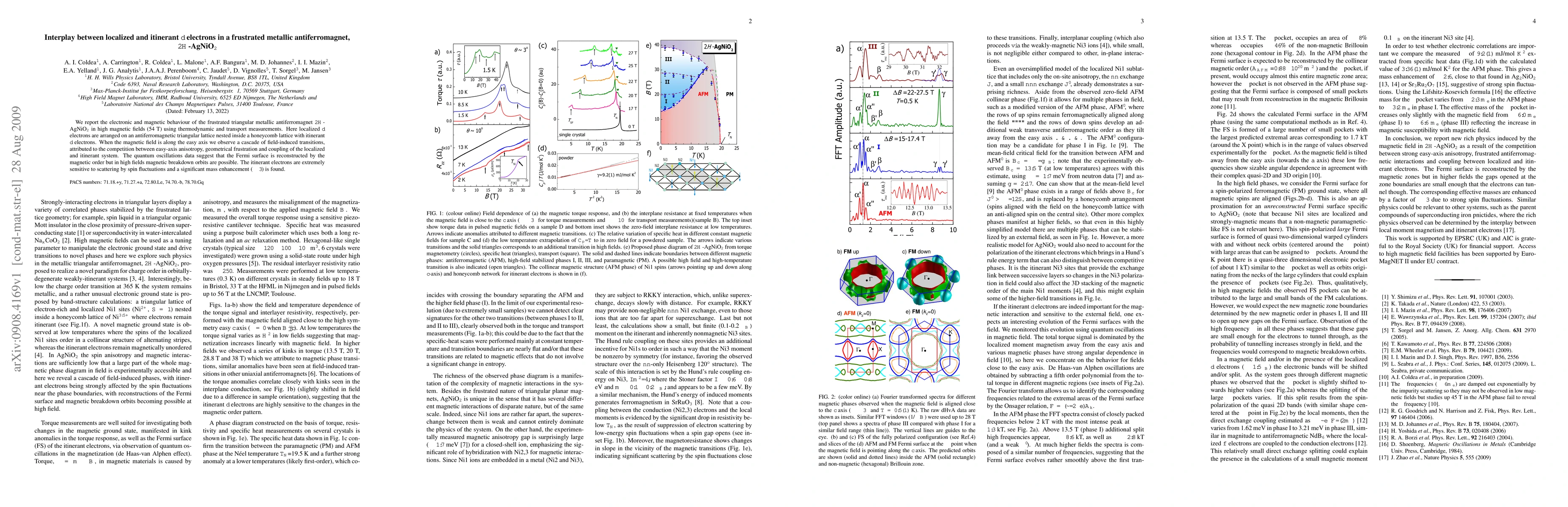 This study investigates the electronic and magnetic behavior of 2H-AgNiO2, a frustrated metallic antiferromagnet, revealing a cascade of field-induced transitions due to the interplay between localized and itinerant d electrons. High magnetic fields induce significant mass enhancement in itinerant electrons and suggest a reconstructed Fermi surface.