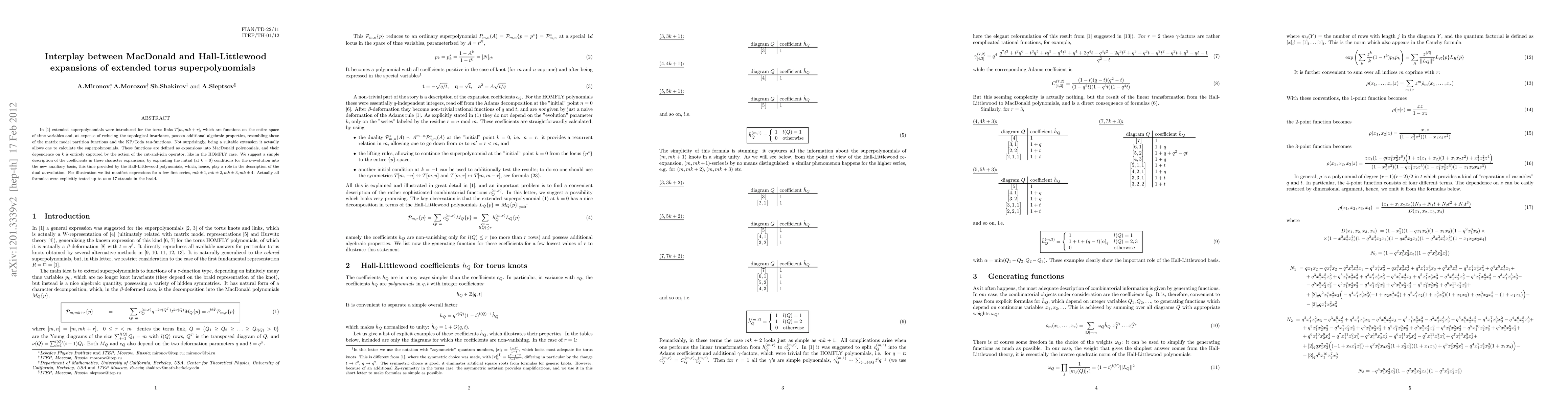 This paper explores the relationship between MacDonald and Hall-Littlewood expansions for extended torus superpolynomials introduced for torus links. It proposes a method to describe the coefficients in these expansions using Hall-Littlewood polynomials, illustrating with explicit expressions for initial cases and confirming results up to 17 strands.