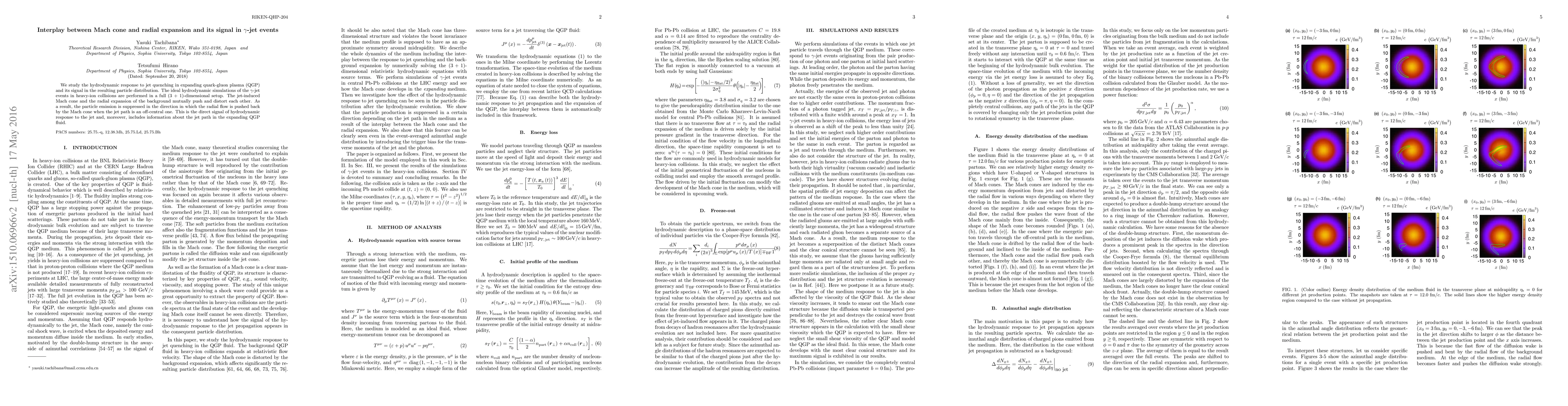 The study explores the interaction between a jet-induced Mach cone and the radial expansion of quark-gluon plasma (QGP) in heavy-ion collisions. Using (3+1)-dimensional hydrodynamic simulations, it's found that these phenomena mutually distort each other, suppressing particle emission in the direction where radial flow is pushed by the Mach cone. This suppression pattern reveals information about the jet's path in the QGP fluid.