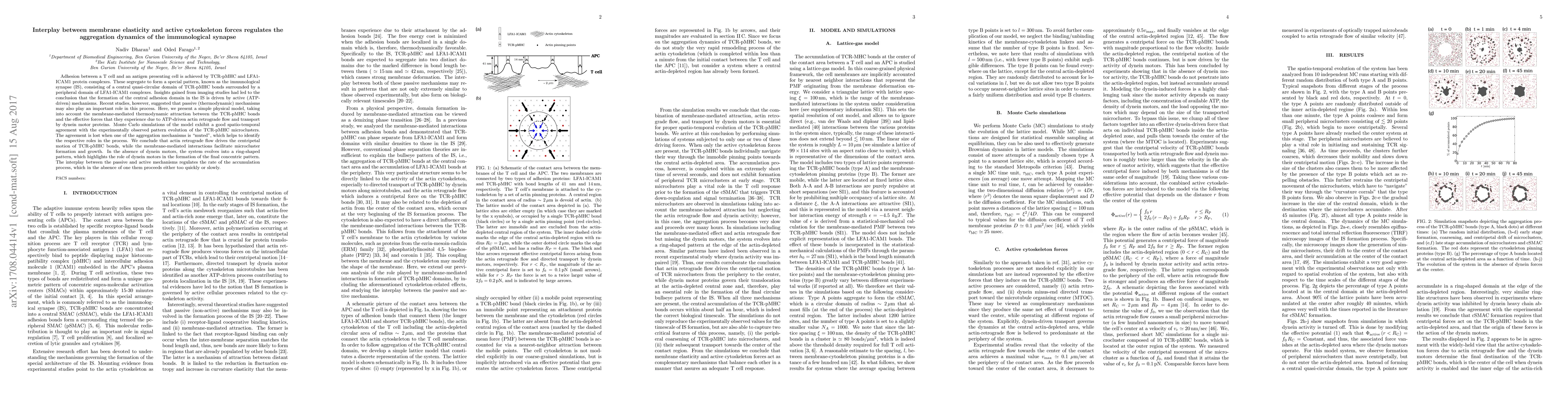 This paper investigates how membrane elasticity and active cytoskeleton forces jointly regulate the formation and dynamics of the immunological synapse, revealing that both ATP-driven actin flow and passive thermodynamic interactions are crucial for the proper aggregation and spatial patterning of TCR-pMHC microclusters.