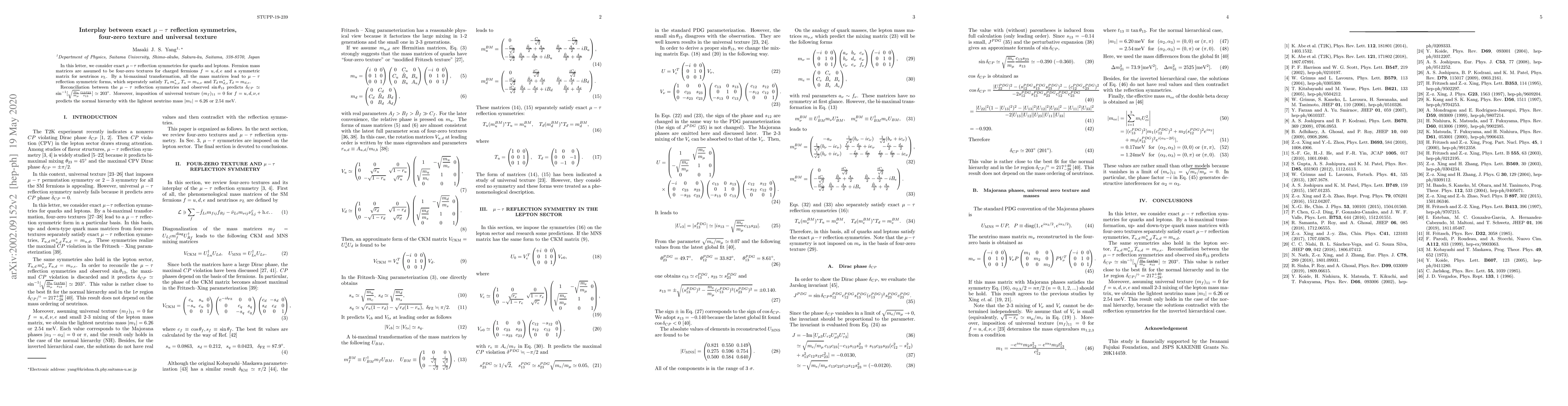 In this letter, we consider exact $\mu-\tau$ reflection symmetries for quarks and leptons. Fermion mass matrices are assumed to be four-zero textures for charged fermions $f = u,d,e$ and a symmetric matrix for neutrinos $\nu_{L}$. By a bi-maximal transformation, all the mass matrices lead to $\mu-\tau$ reflection symmetric forms, which seperately satisfy $T_{u} \, m_{u,\nu}^{*} \, T_{u} = m_{u,\nu}$ and $T_{d} \, m_{d,e}^{*} \, T_{d} = m_{d,e}$. Reconciliation between the $\mu-\tau$ reflection symmetries and observed $\sin \theta_{13}$ predicts $\delta_{CP} \simeq 203^{\circ}$. Moreover, imposition of universal texture $(m_{f})_{11} = 0$ for $f=u,d,\nu,e$ predicts the normal hierarchy with the lightest neutrino mass $|m_{1}| = 6.26$ or $2.54$ meV.