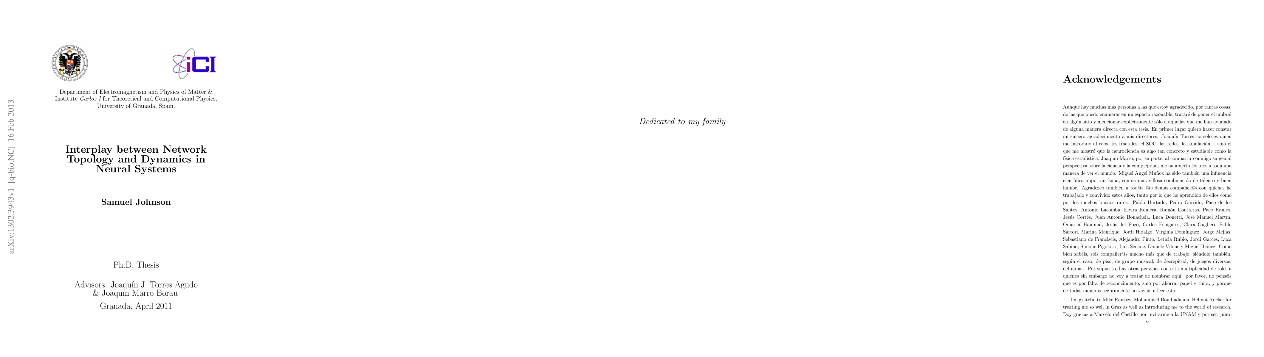 This thesis is a compendium of research which brings together ideas from the fields of Complex Networks and Computational Neuroscience to address two questions regarding neural systems: 1) How the activity of neurons, via synaptic changes, can shape the topology of the network they form part of, and 2) How the resulting network structure, in its turn, might condition aspects of brain behaviour. Although the emphasis is on neural networks, several theoretical findings which are relevant for complex networks in general are presented -- such as a method for studying network evolution as a stochastic process, or a theory that allows for ensembles of correlated networks, and sets of dynamical elements thereon, to be treated mathematically and computationally in a model-independent manner. Some of the results are used to explain experimental data -- certain properties of brain tissue, the spontaneous emergence of correlations in all kinds of networks... -- and predictions regarding statistical aspects of the central nervous system are made. The mechanism of Cluster Reverberation is proposed to account for the near-instant storage of novel information the brain is capable of.