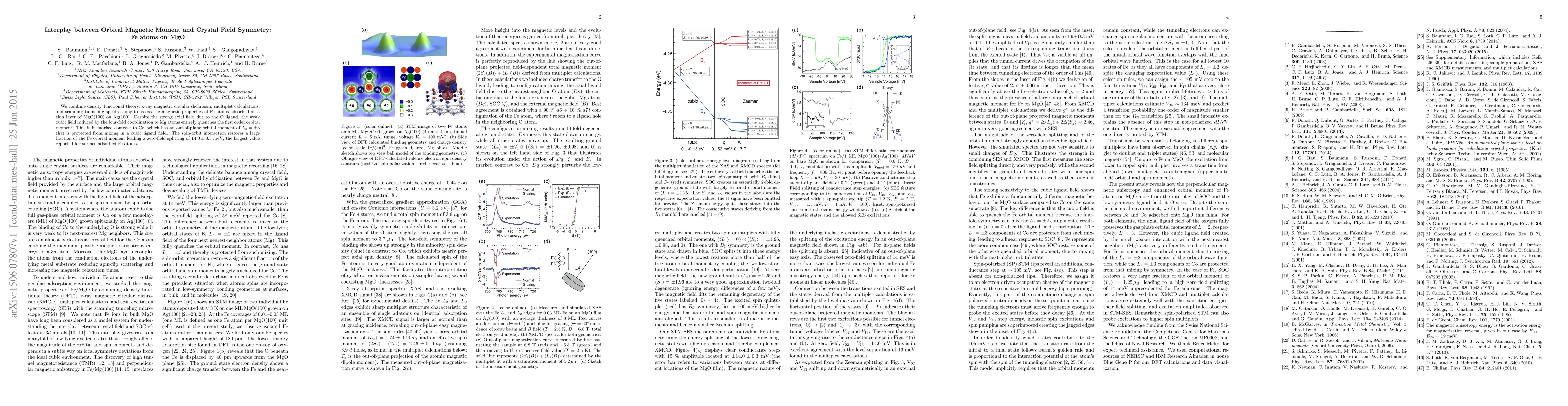We combine density functional theory, x-ray magnetic circular dichroism, multiplet calculations, and scanning tunneling spectroscopy to assess the magnetic properties of Fe atoms adsorbed on a thin layer of MgO(100) on Ag(100). Despite the strong axial field due to the O ligand, the weak cubic field induced by the four-fold coordination to Mg atoms entirely quenches the first order orbital moment. This is in marked contrast to Co, which has an out-of-plane orbital moment of $L_z = \pm 3$ that is protected from mixing in a cubic ligand field. The spin-orbit interaction restores a large fraction of the Fe orbital moment leading a zero-field splitting of $14.0 \pm 0.3$~meV, the largest value reported for surface adsorbed Fe atoms.