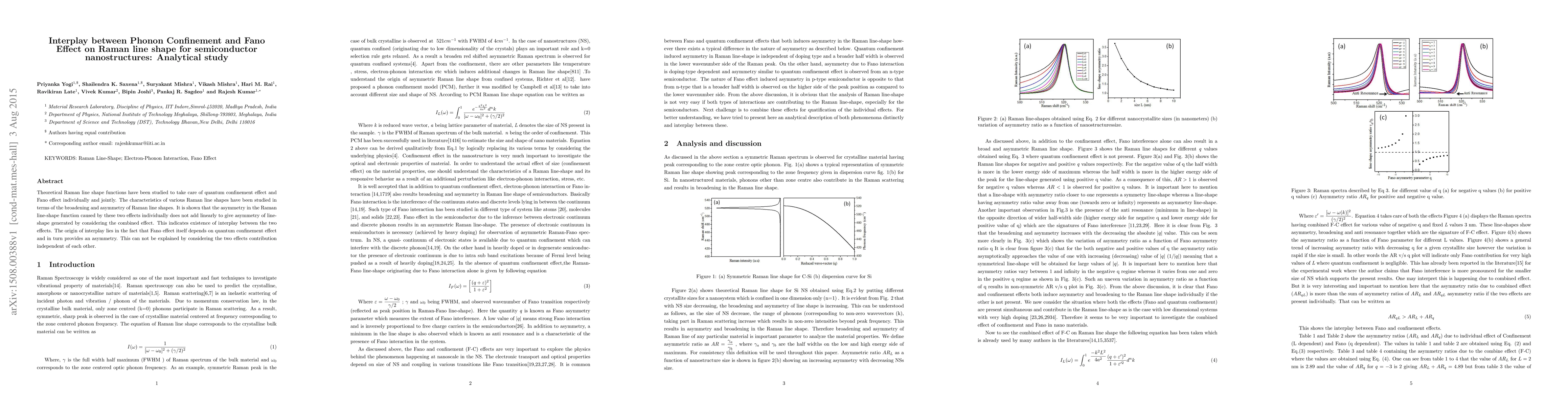 Researchers studied how phonon confinement and Fano effect affect Raman line shape in semiconductor nanostructures, finding an interplay between the two effects that can't be explained by their individual contributions.
