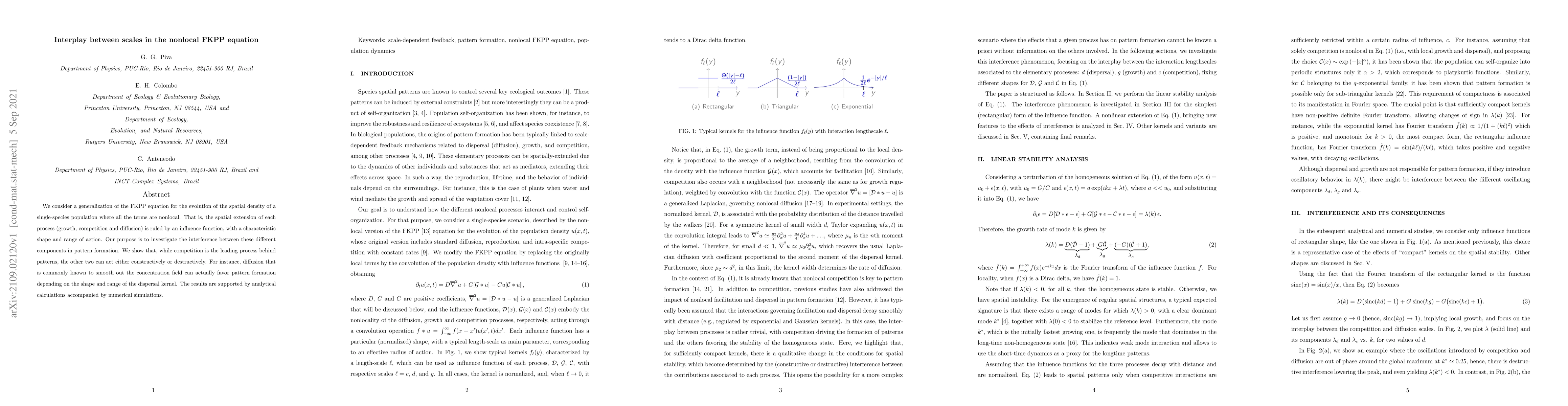 We consider a generalization of the FKPP equation for the evolution of the spatial density of a single-species population where all the terms are nonlocal. That is, the spatial extension of each process (growth, competition and diffusion) is ruled by an influence function, with a characteristic shape and range of action. Our purpose is to investigate the interference between these different components in pattern formation. We show that, while competition is the leading process behind patterns, the other two can act either constructively or destructively. For instance, diffusion that is commonly known to smooth out the concentration field can actually favor pattern formation depending on the shape and range of the dispersal kernel. The results are supported by analytical calculations accompanied by numerical simulations.