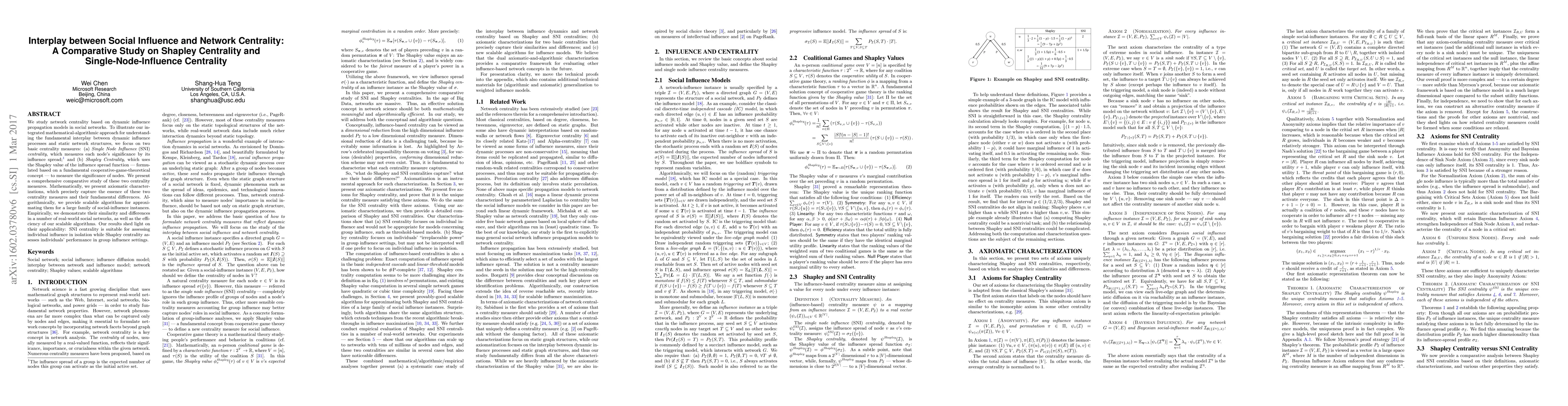 This paper compares two centrality measures—Single Node Influence (SNI) and Shapley Centrality—in the context of dynamic influence propagation in social networks. It provides mathematical characterizations, scalable algorithms, and empirical evaluations to highlight their differences, showing that SNI assesses individual influence while Shapley centrality evaluates group influence.
