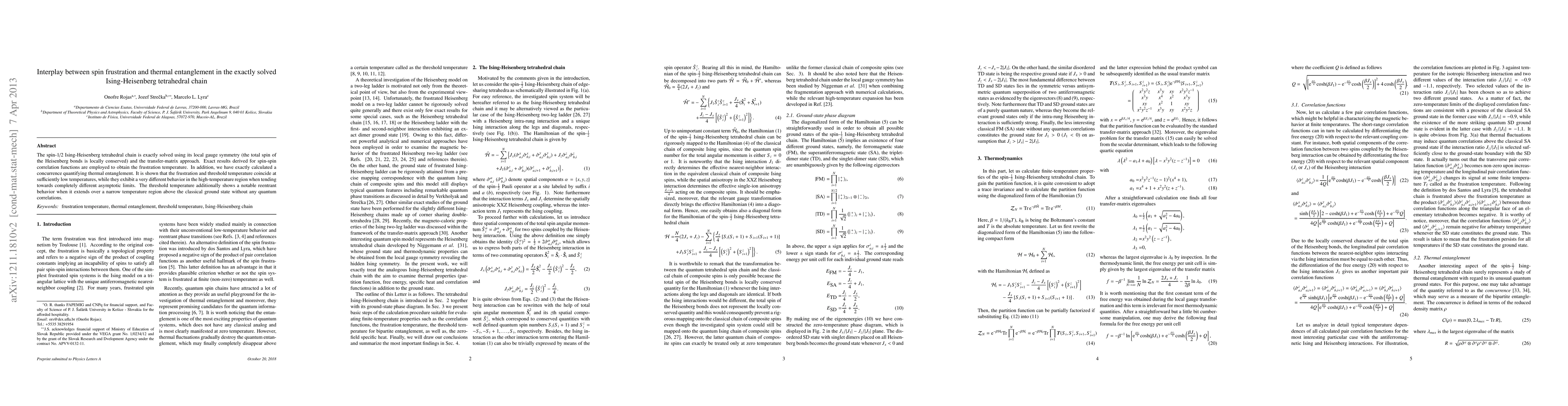 The Ising-Heisenberg tetrahedral chain reveals exact solutions showing that spin frustration and thermal entanglement temperatures coincide at low temperatures but diverge at high temperatures. The thermal entanglement threshold also exhibits reentrant behavior, and specific heat shows temperature dependence with potential low-temperature anomalies.