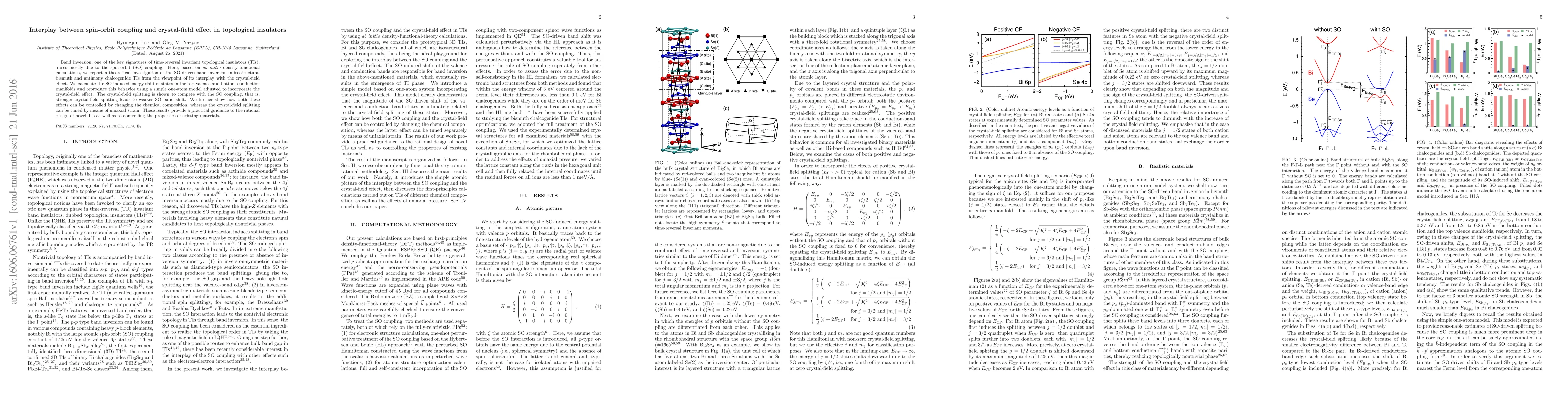 This paper investigates the interplay between spin-orbit coupling and the crystal-field effect in topological insulators, demonstrating how crystal-field splitting competes with spin-orbit coupling to influence band inversion. The study provides insights into tuning these effects through chemical composition and strain for the design of novel TIs.