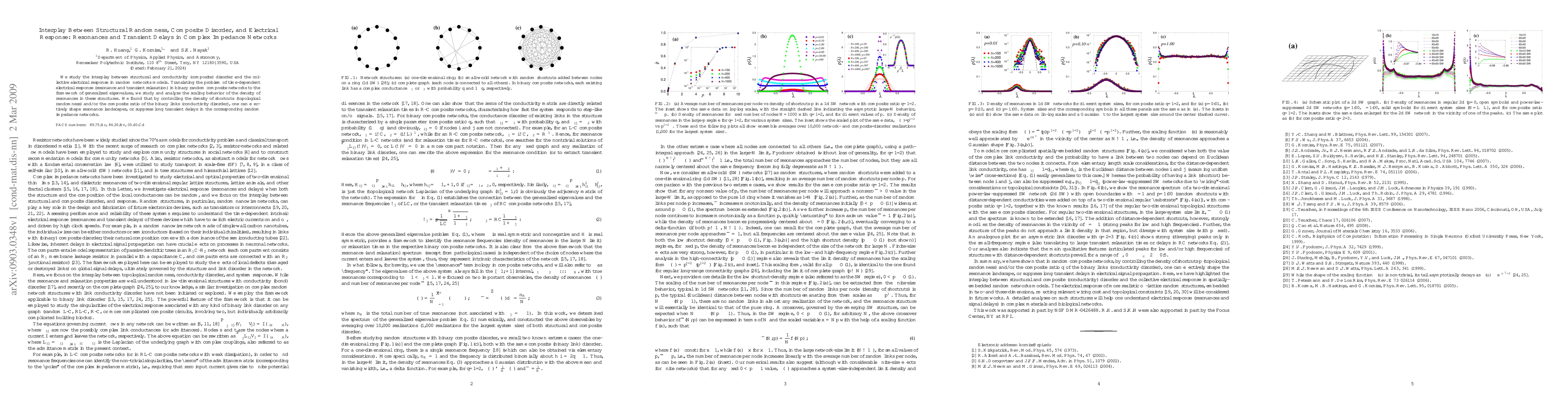 This paper investigates how structural randomness and composite disorder influence the electrical response in random impedance networks, focusing on resonance and transient delays. The study reveals that adjusting the density of shortcuts or the ratio of binary links can shape resonance landscapes and reduce transient delays.