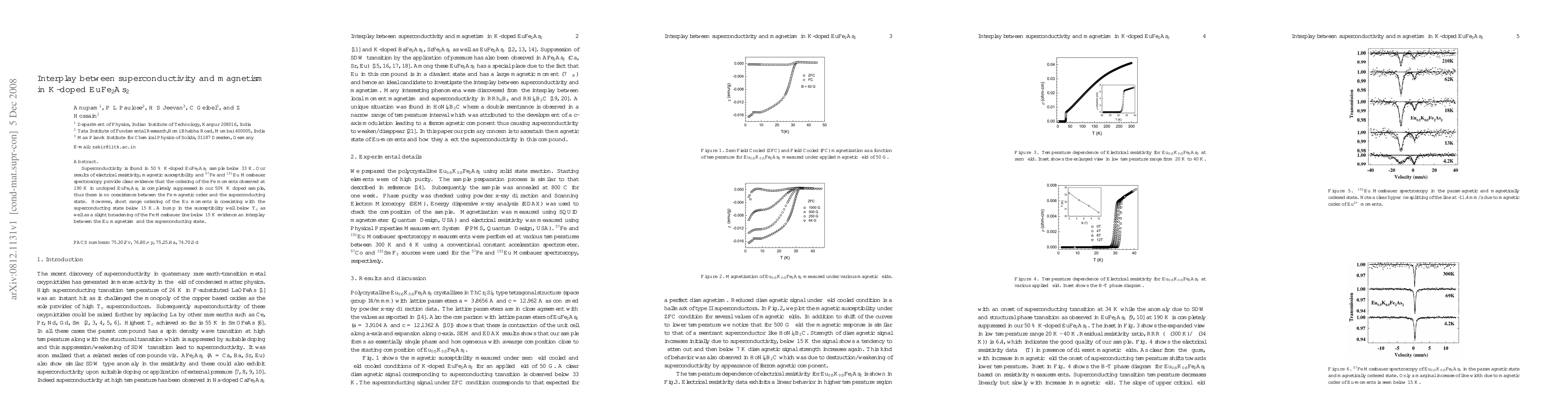 This study reveals that superconductivity in 50% K-doped EuFe2As2 emerges below 33 K, while the Fe magnetic order is suppressed, indicating no coexistence between superconductivity and Fe magnetism. However, short-range Eu magnetic ordering coexists with superconductivity below 15 K, suggesting an interplay between Eu magnetism and the superconducting state.